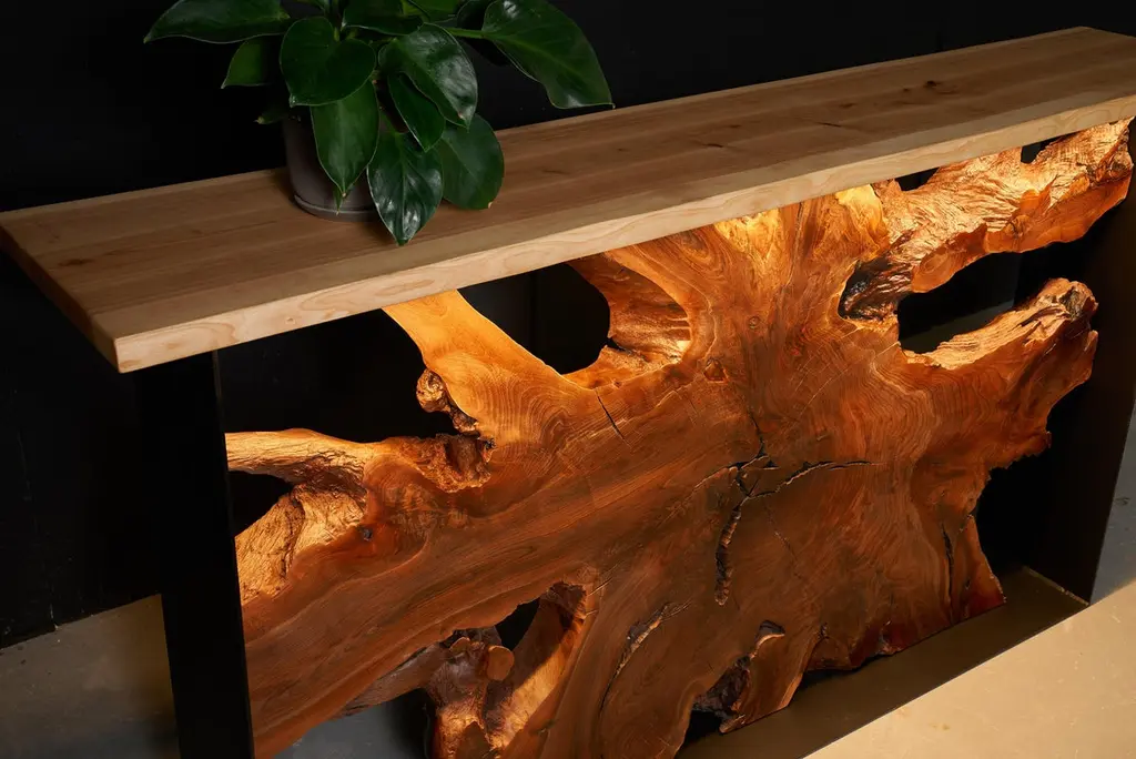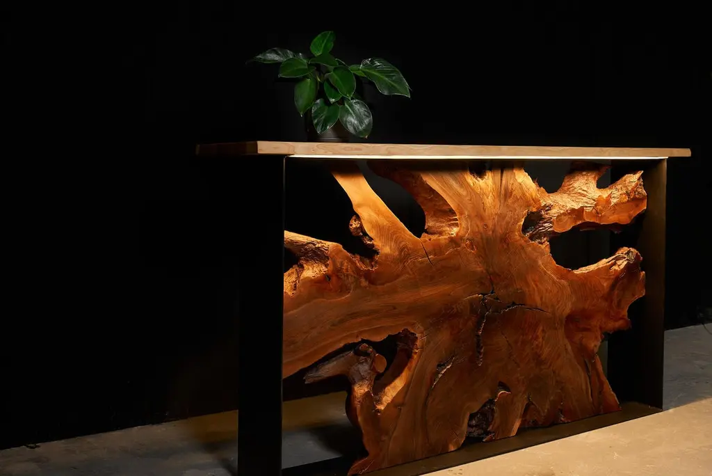 Premium Walnut Root Reception Desk and Bar Counter: The Art of Nature and Modern DesignOur walnut root products are more than just furniture. They are unique elements where natural beauty meets the craftsmanship of handwork. Each reception desk and bar counter embodies natural aesthetics and eco-style, where the root of the wood retains its original texture and form, turning into a focal point of any interior.We skillfully combine gnarled, living lines of the wood with minimalist black framing, creating a striking contrast that adds depth and character to the piece. These roots, drawn from the depths of nature, become true works of art when crafted by our artisans.The LED backlighting, built into the structure, highlights the graceful natural lines, creating an atmosphere where nature and modernity meet in perfect harmony. These pieces, filled with the spirit of nature and craftsmanship, give your space a unique and premium look that will be remembered forever.Disclaimer: As the product is made from natural wood, it may slightly differ from the photos due to variations in wood texture and shape.