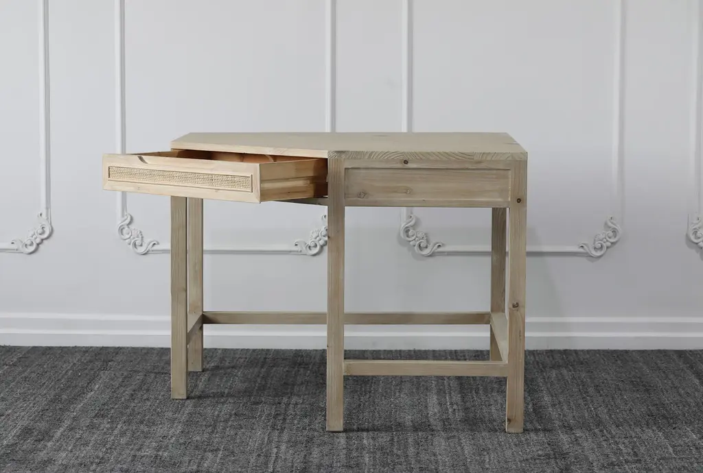 Natural Reclaimed Pine + Rattan Desk