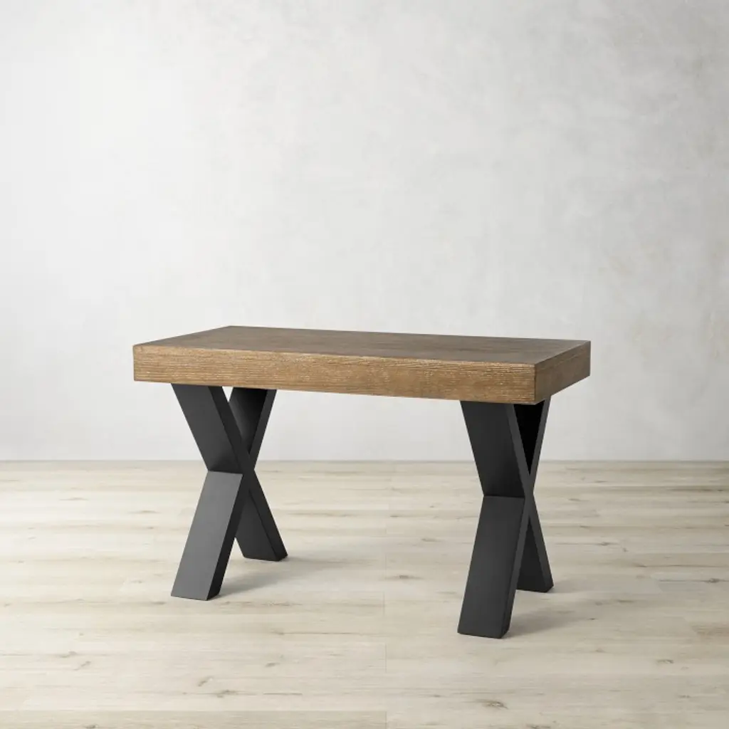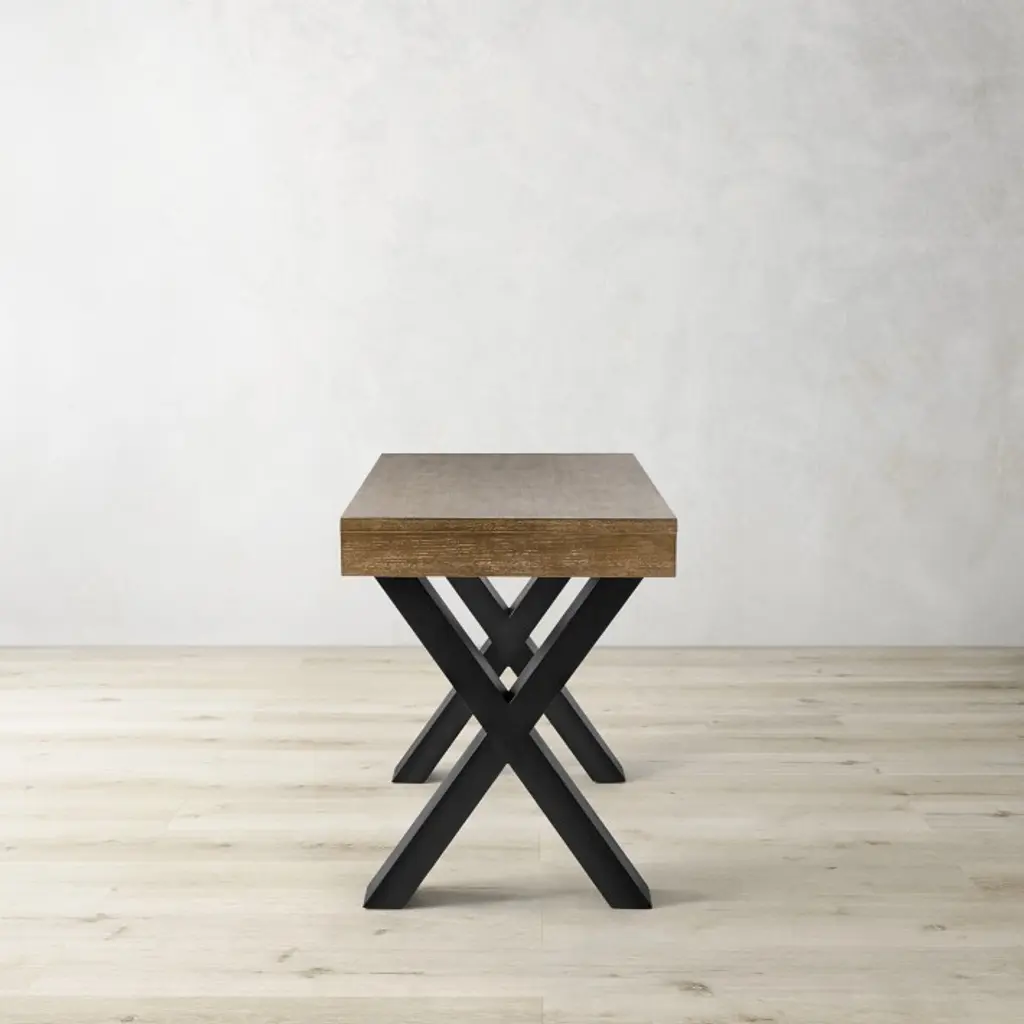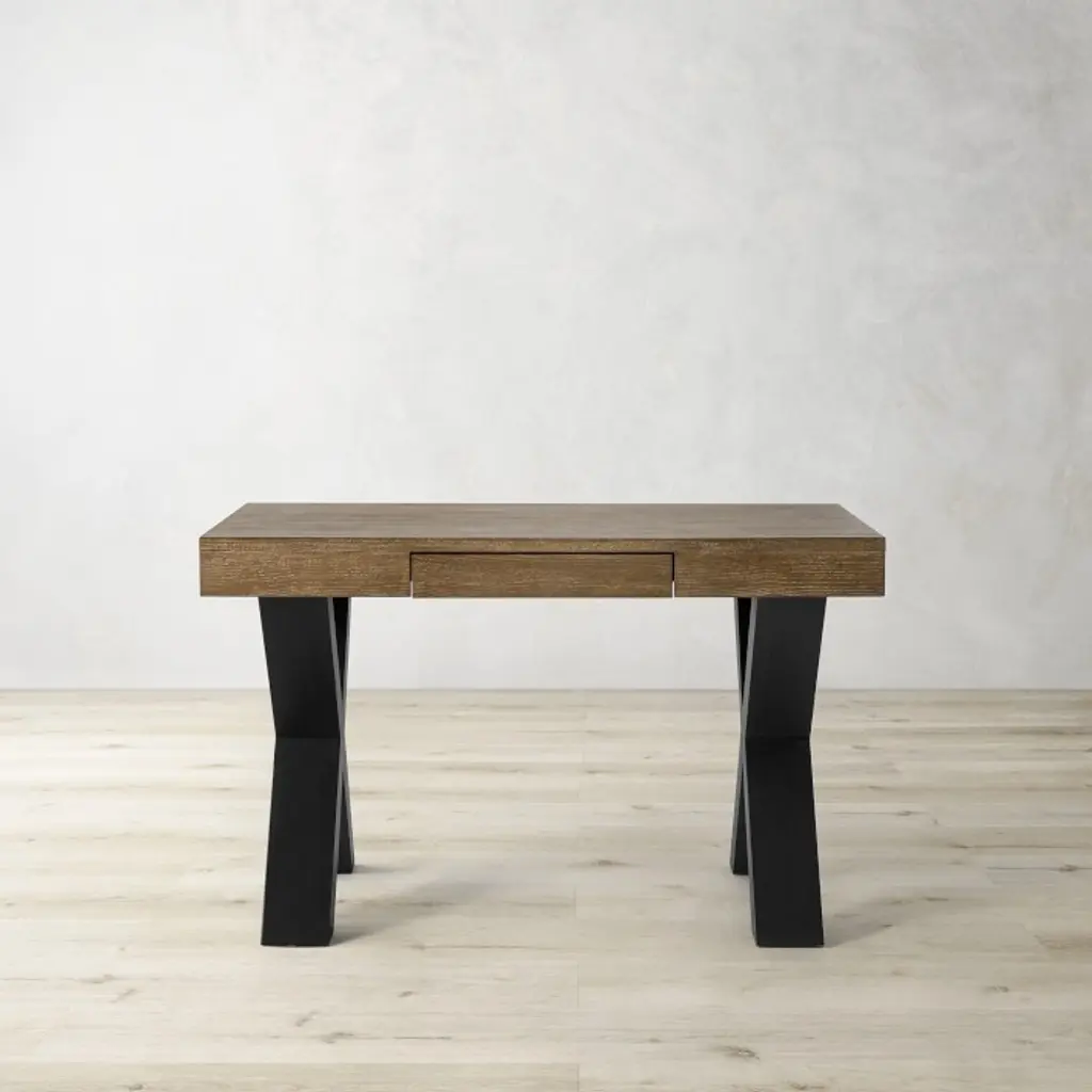 Crafted by master furniture builders with American ash veneer and steel, this sizeable desk brings rich texture to contemporary design. Set on bold steel X bases, the substantial top offers ample workspace and a drawer for essentials.