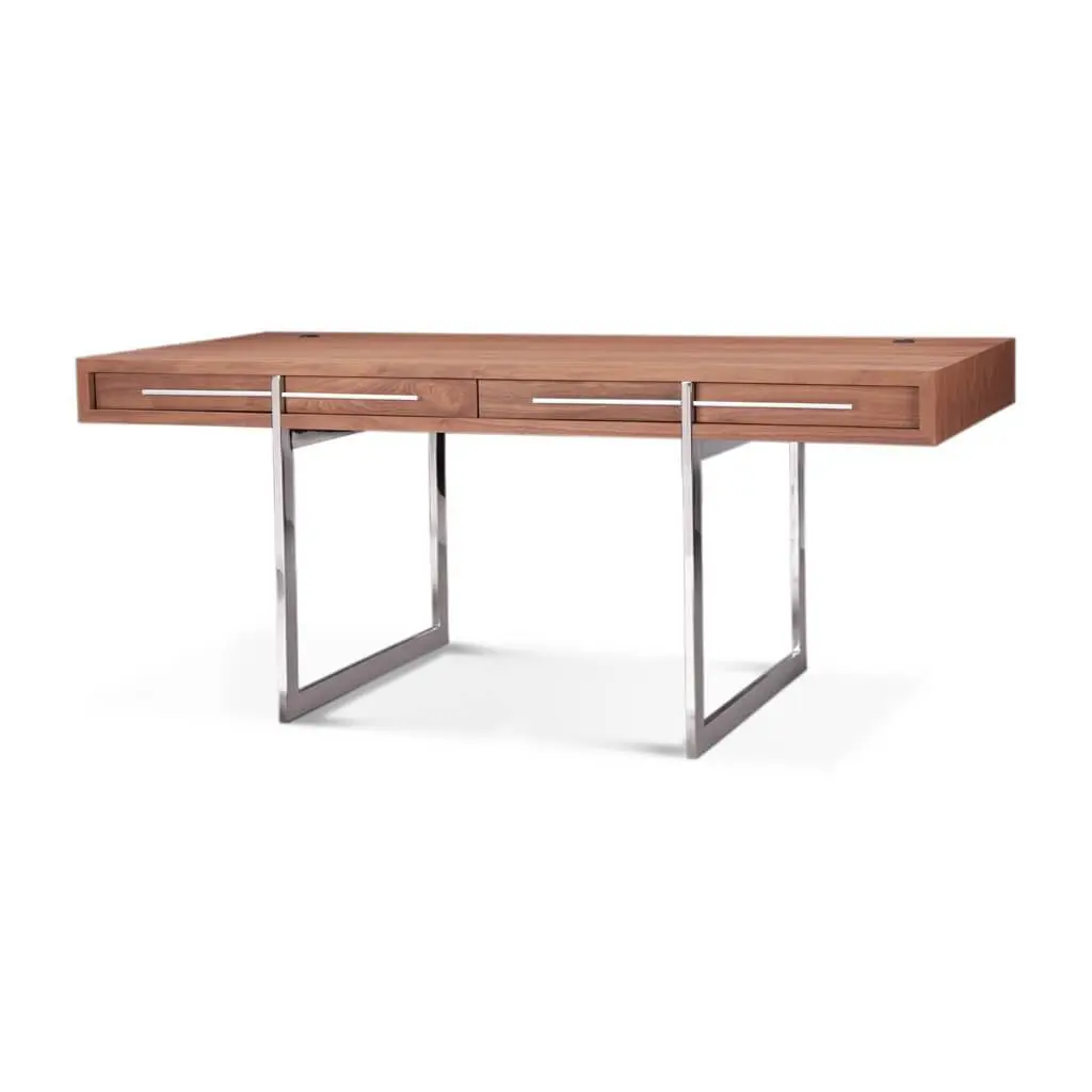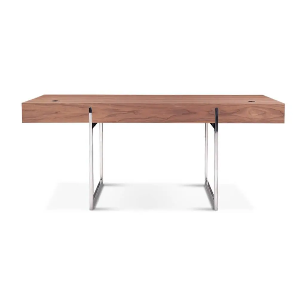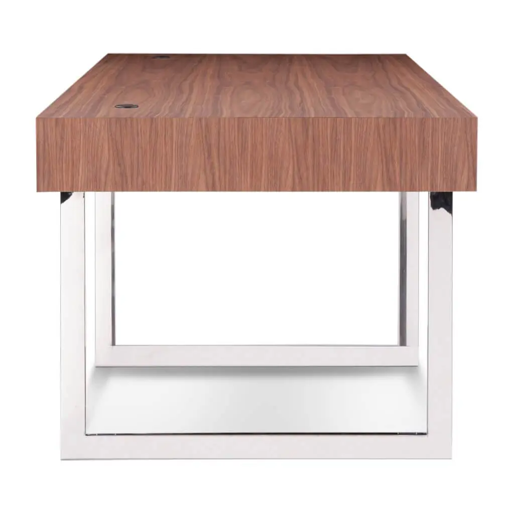 A contemporary, streamlined desk which allows for hidden electrical wiring.