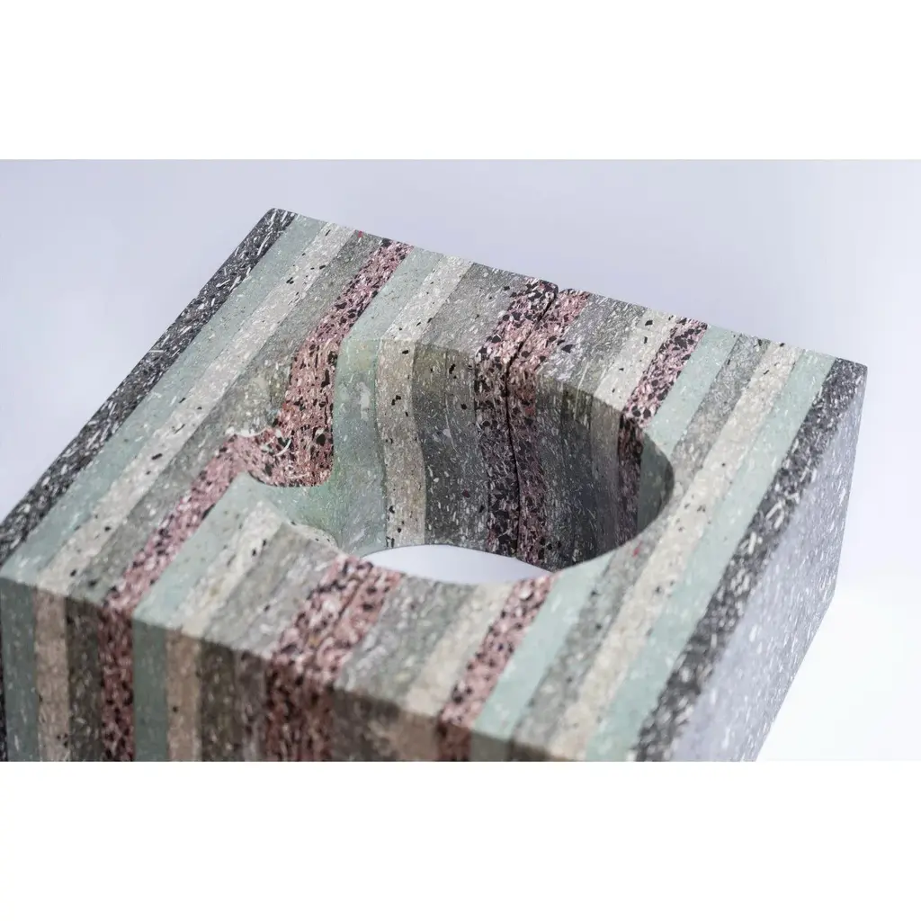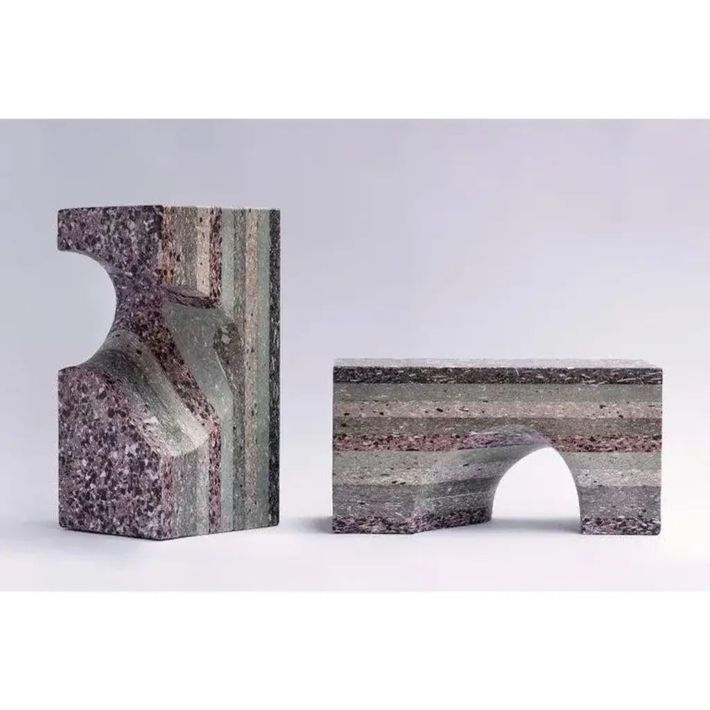 Set of 2 nestep by dmnts design dimensions: 20 x 40 x 20 cm (each piece) materials: recycled fibre-glass and expanded plastic boards one of a kind. Nestep, is based on the reuse of manufacturing scraps from italian company gees recycling. The investigation focused on the reuse of processing scraps of furnishing accessory, made up of recycled fibre-glass and expanded plastic boards, fetched from abandoned boats and campers. Nestep multi-purpose & user” consists of two identical and complementary modules changing their shape according to the user point of view and combining several functional scenarios. The project aims to be a design approach rather than just an object, highlighting and approaching a possible solution, to the manufacturing scraps issue in the contemporary productive system. Lorenzo demontis is an architect and designer based in sardinia, italy. Since graduating from sapienza university in rome, he has been working as freelance designer for various design and architecture studios in italy and in the netherlands, as well as carrying on with his own projects with dmnts. Lorenzo’s aim is to research and develop a design approach where archetype forms are combined with pure functionality and contemporary issues. Establishing new relations between advanced manufacturing and craftsmanship. Focused on a complete sustainability, where manufacturing scraps from wood, marble and plastic industries, regain a purpose through specific design investigations.