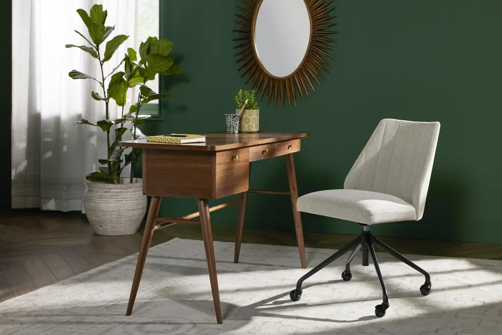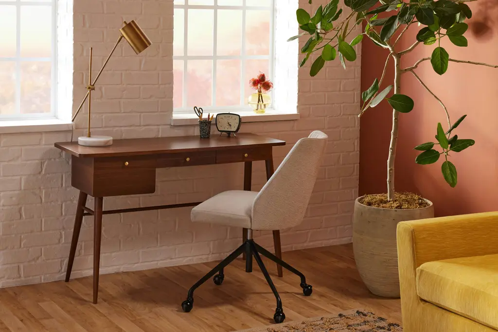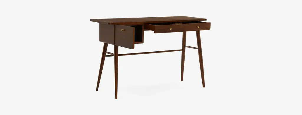 Keep your home office stylish and productive with the Nia Desk. Boasting a slim Mid-Century profile with storage space to boot, your work from home set up just got even better. Perfect for getting down to business or writing the next great American novel, the Nia Desk features a spacious table top, with two slim drawers and a spacious cabinet to hold all your work essentials.