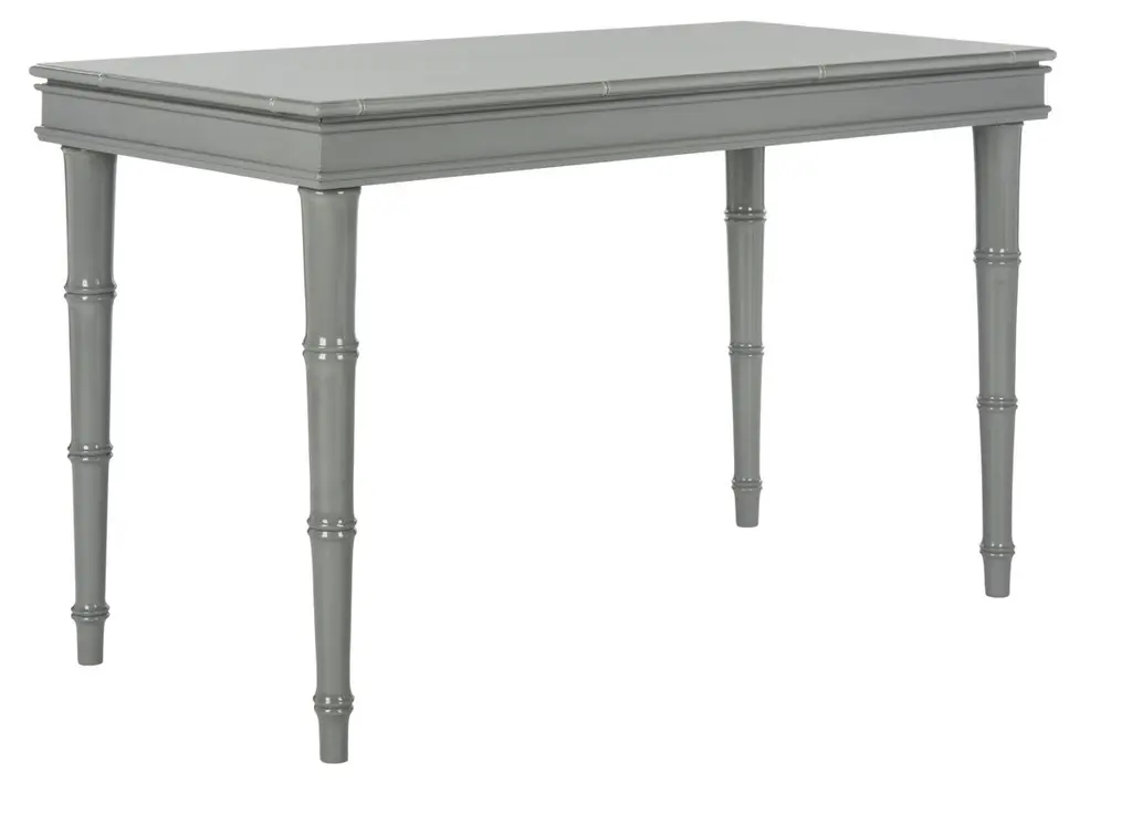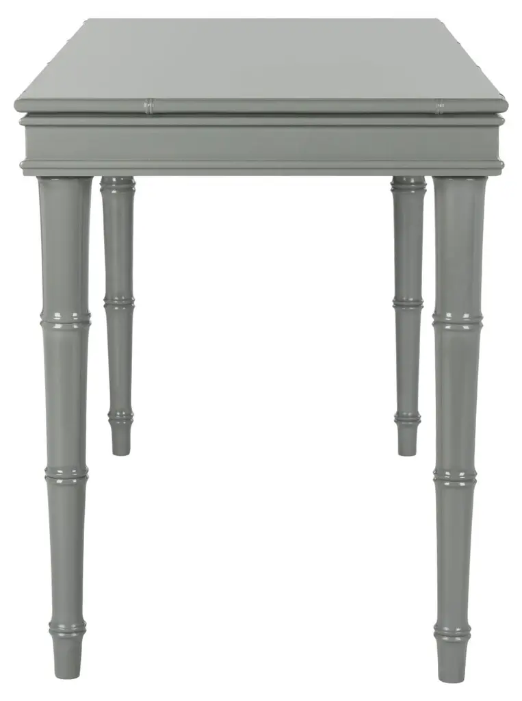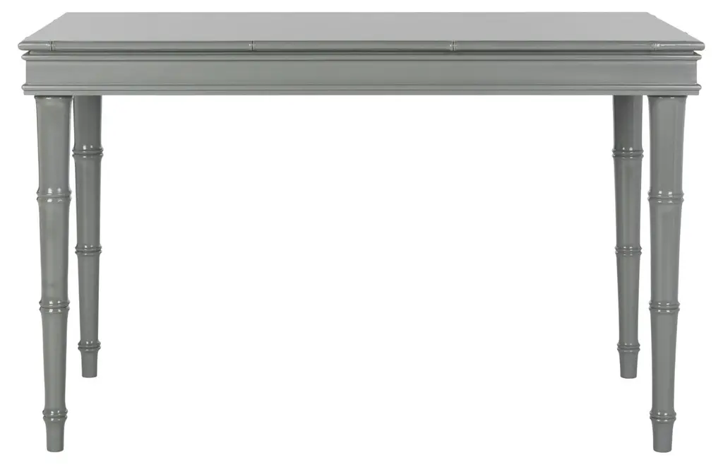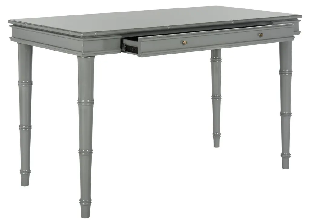 Carved to resemble stalks of bamboo, this sleek desk brings a refined, tropical feel to any workspace. A sliding drawer provides plenty of concealed storage, while bamboo-like carvings lend a hint of Chinese Chippendale charm. The design is completed with beveled zinc hardware.