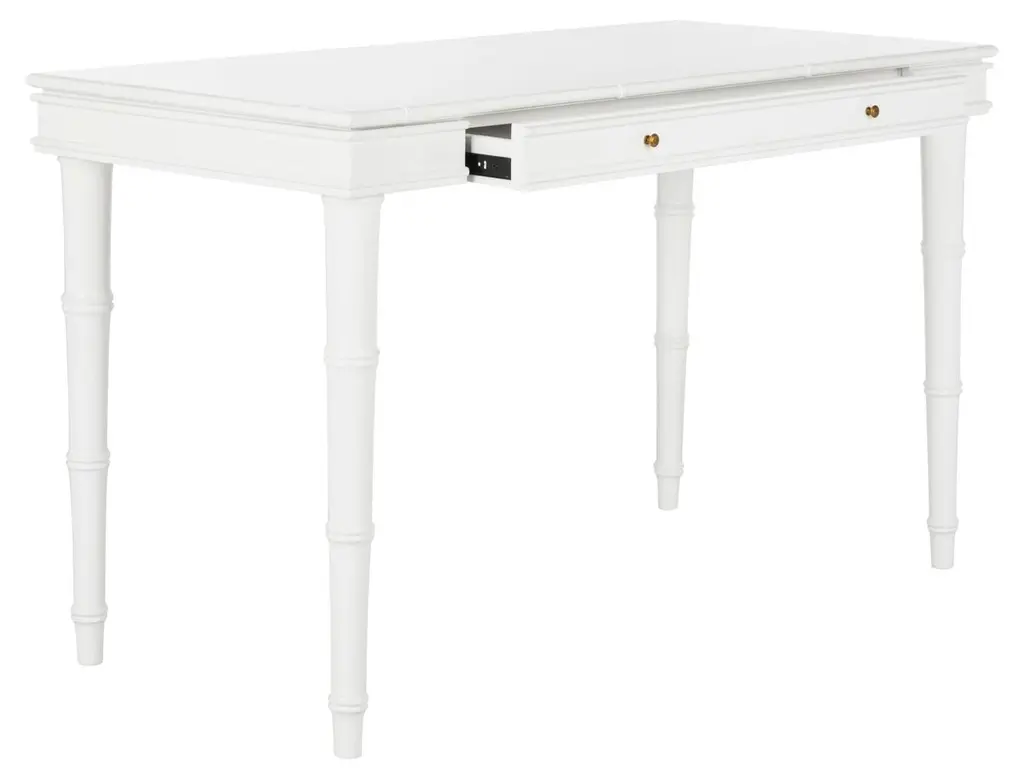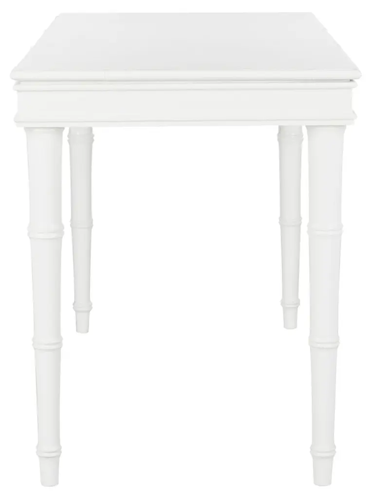 Carved to resemble stalks of bamboo, this sleek desk brings a refined, tropical feel to any workspace. A sliding drawer provides plenty of concealed storage, while bamboo-like carvings lend a hint of Chinese Chippendale charm. The design is completed with beveled zinc hardware.