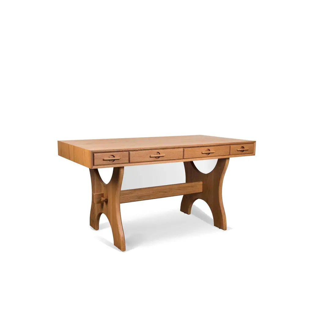 The Ojai desk has four drawers and features solid American walnut or white oak trestle legs. The drawer handles are made of solid carved wood. The Lawson-Fenning Ccollection is designed and handmade in Los Angeles, California. Reach out to discover what options are currently in stock.