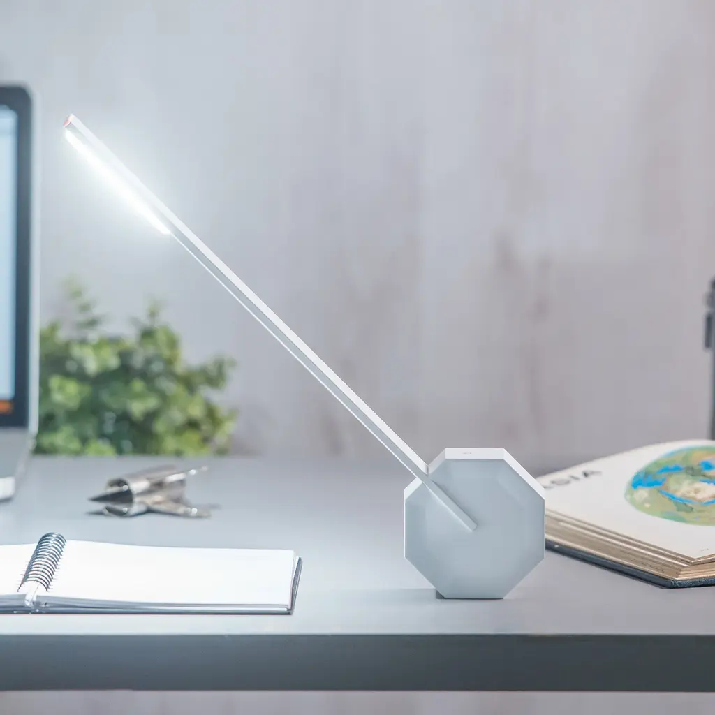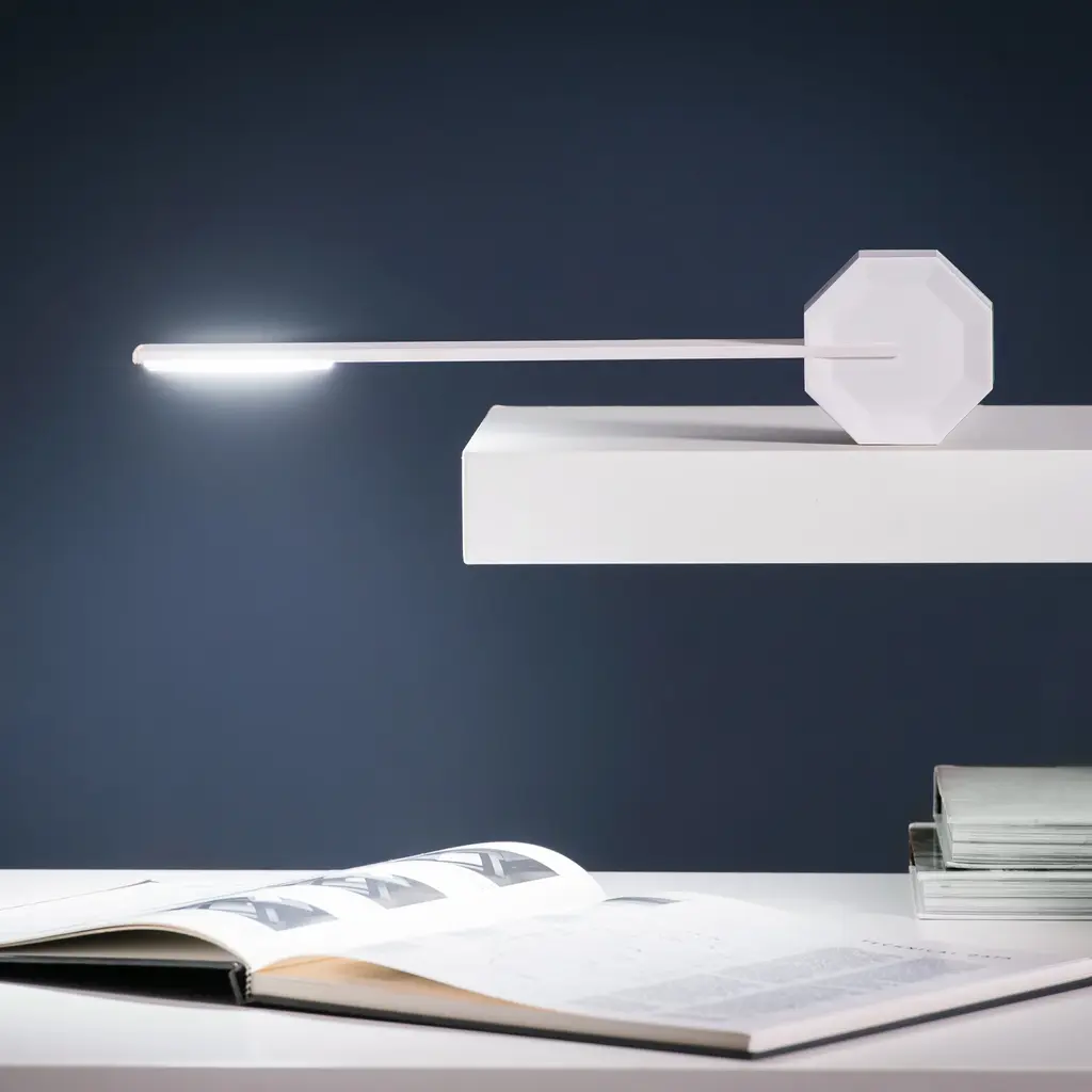 As functional as it is eye-catching, this wireless, rechargeable lamp features an adjustable octagonal base and touch-sensitive LED light with four different levels of brightness. The lamp can be easily positioned at three different angles, and the built-in, 3.7v rechargeable battery provides up to 48 hours of continuous light after charging for just four hours. The Octagon Desk Light is made from milled aluminum casing in either a natural wood finish or all white and features 36 LED light beads with light-diffusing cover. USB charging cable included. It’s 15” high (or long, depending on the position) and 3.4” wide. Available in wood finish or white. Color temperature 3700K Lumen with an approximately 50,000-hour LED lifespan. Output: 324lmNet