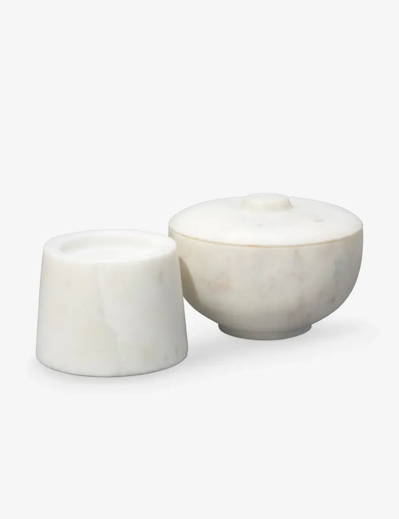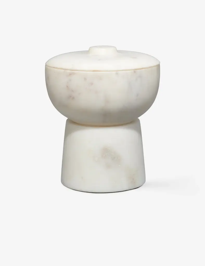 The Odesky bowl offers a sculptural tabletop accent with practical appeal. The soft hue of the marble is the perfect complement to its gently rounded linesoffering an artful profile, simply refined. Plus, this small-scale storage piece is topped with a lidperfect for keeping everyday essentials on hand in a curated space.