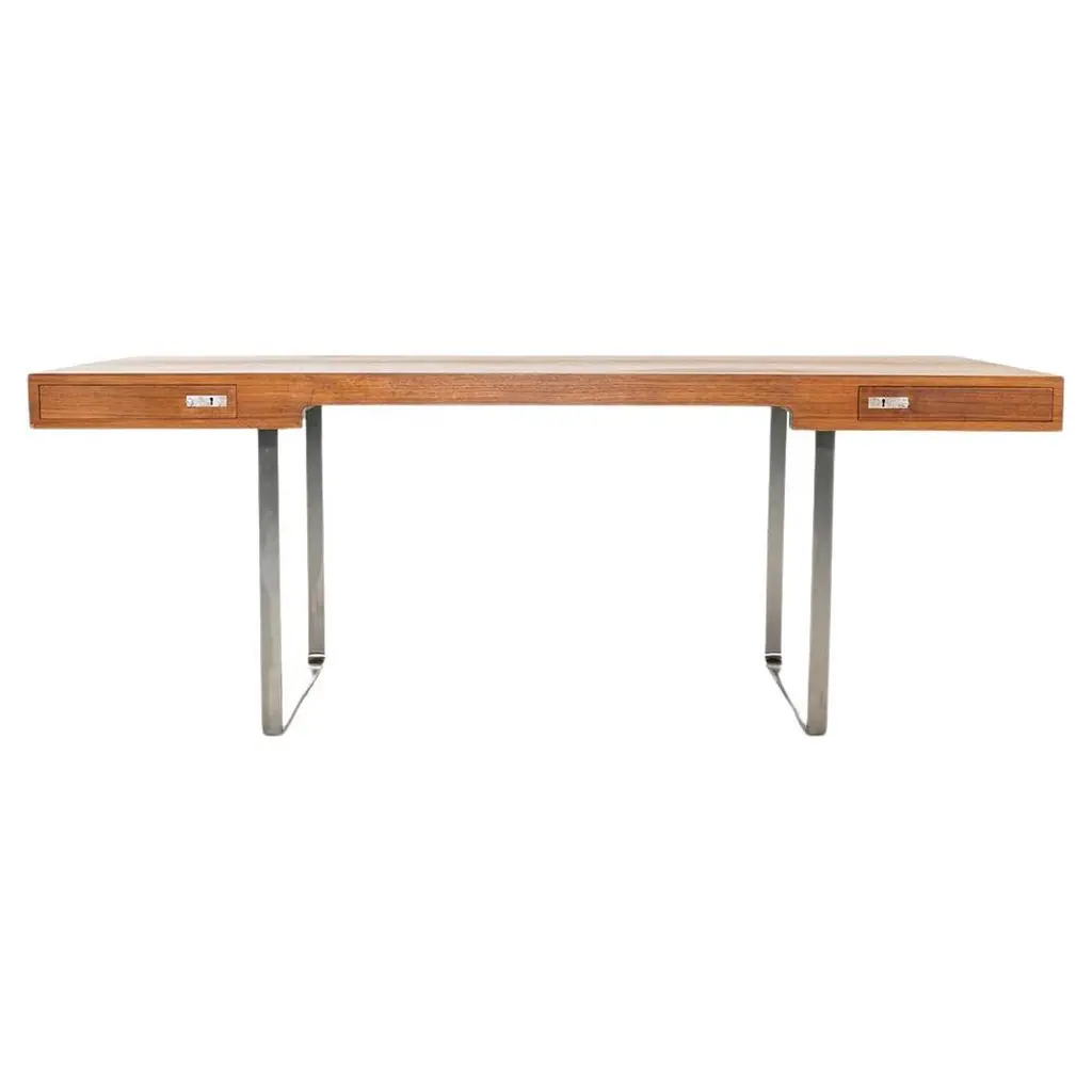 Office Desk In Walnut Stainless Steel Frame By Bodil Kjaer 1959 For Karakter