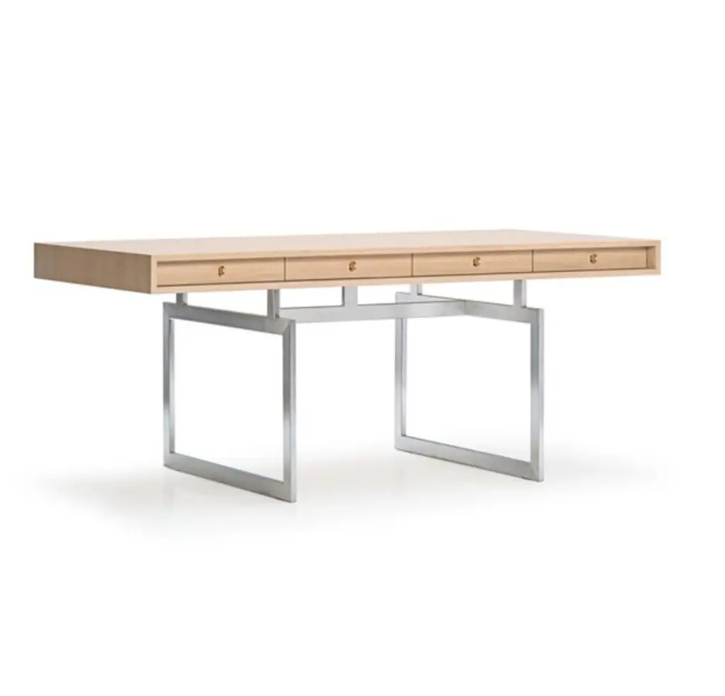Office Desk by Bodil Kjaer 1959Coveted by renowned modernist architects Marcel Breuer, José Luis Sert and Paul Rudolph, Danish architect Bodil Kjær's Office Desk from 1959 has been dubbed 'the most beautiful desk in the world'. Elevated on slender steel legs, the spacious, freestanding work table has an air of architectural transparency and is as practical as it is handsome. With its exquisitely pure lines, Office Desk is a premier example of Danish Modern design principles. The Office Unit series was part of Kjær's design concept, Elements of Architecture, a range of functional furniture for open and flexible workspaces and everyday life developed in the 50s and 60s. Its timeless sophistication has over the years placed it front and center on BBC's election night broadcasts as well as in three early James Bond movies.Important information regarding images of products:Please note that some of the images show other colors and variations of the model, these images are only to present interior design proposals. The item that is selling is on the first image.Important information regarding color(s) of products:Actual colors may vary. This is due to the fact that every computer monitor, laptop, tablet and phone screen has a different capability to display colors and that everyone sees these colors differently. We try to edit our photos to show all of our products as life-like as possible, but please understand the actual color may vary slightly from your monitorAbout the designer:She has been featured in The New York Times and Wall Street Journal Magazine. She designed a desk for MIT which was dubbed 'The most beautiful desk in the world' and eventually immortalized in 3 early James Bond movies. Danish architect, designer and professor Bodil Kjær (born 1932) is the female trailblazer of Danish midcentury design, who although tutored by modernist master Finn Juhl, in her own words "... never had much interest in following in the footsteps of the Danish rat pack". Kjær looked to America, inspired by Charles and Ray Eames, and indeed many of her most notable designs stems from her time in the U.S., where she briefly worked at Paul McCobb, before moving to Boston to further her career in corporate interior architecture. Kjær's reignited prominence as a designer in later years is well deserved. Pared back, elegant and decidedly modern, her iconic pieces slip effortlessly into contemporary life 60 years on.About the manufacturer:Karakter is a Danish design company founded on a spirit of exploration, courage and an uncompromising attitude to quality. Rooted in the Scandinavian design tradition with an international outlook, Karakter presents a portfolio of furniture, lighting and objects that is relevant, honest, expressive and sometimes playful. Aspiring to build an enduring legacy, they work with contemporary designers such as Aldo Bakker and PlueerSmitt and present works by the masters Bodil Kjær, Achille and Pier Giacomo Castiglioni, Paul McCobb, Joe Colombo and Angelo Mangiarotti. Each piece has a clear, undeniable expression, ensuring it pride of place in private homes and public spaces worldwide.