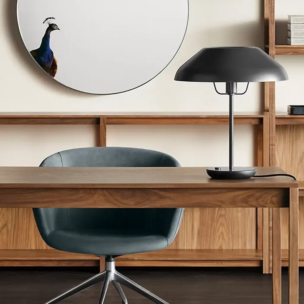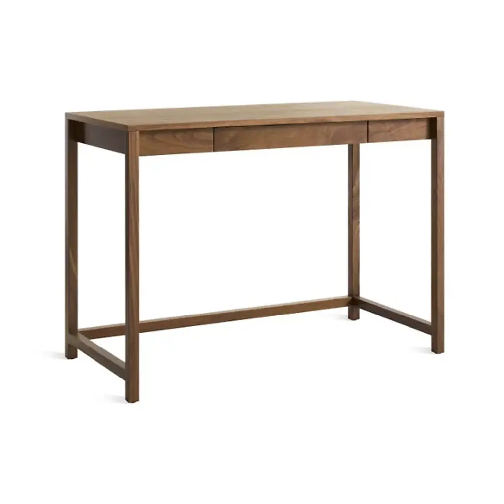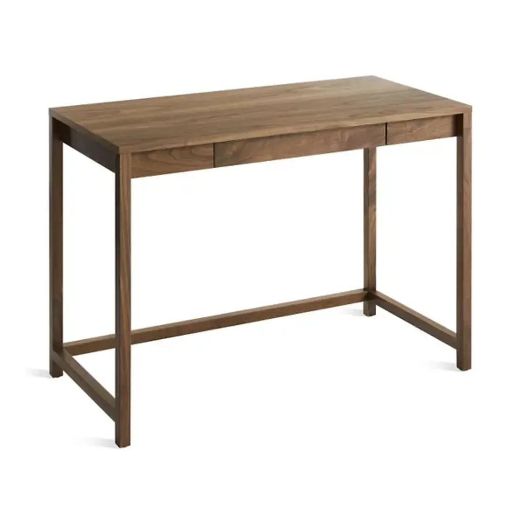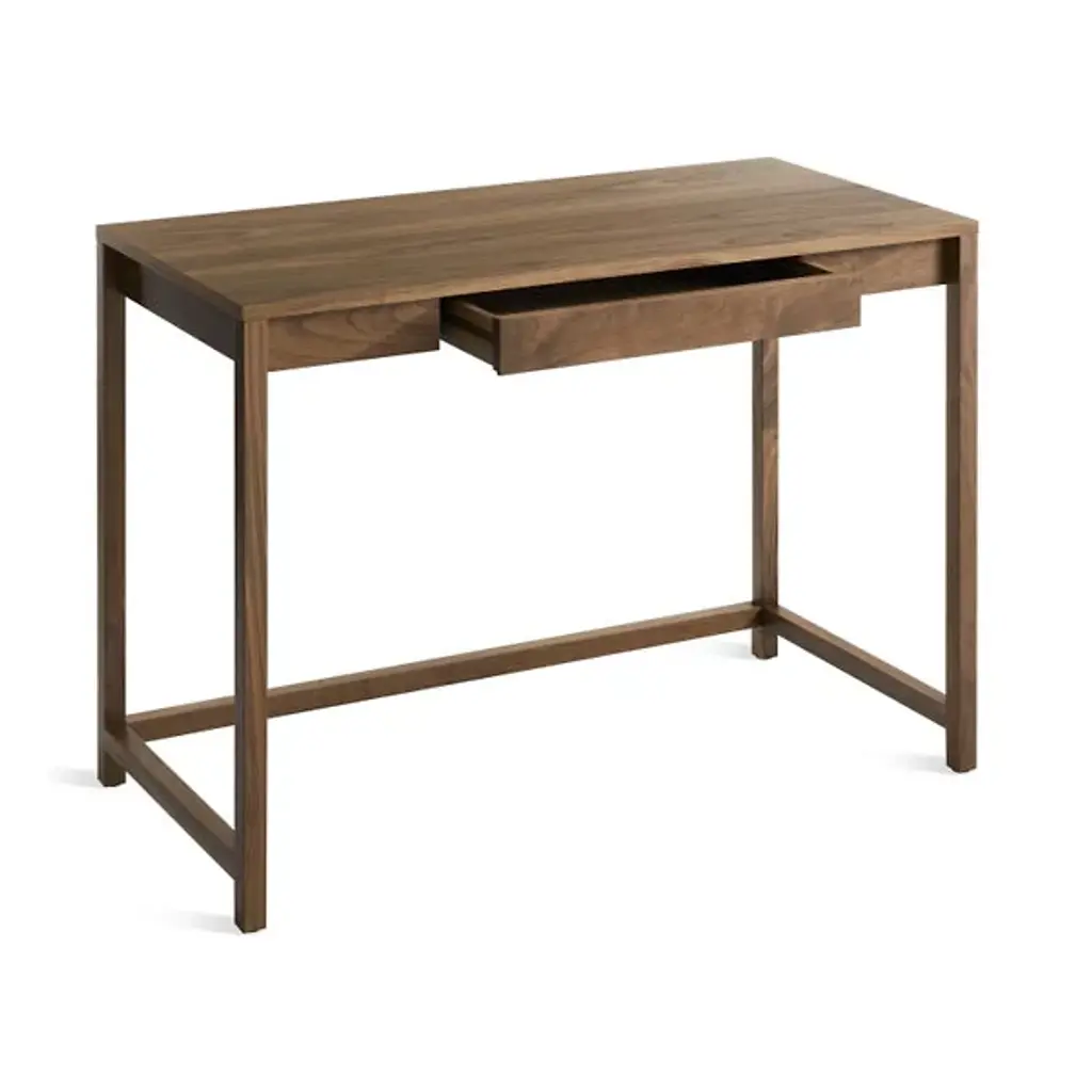 Go into a study session with a clear mind with help from the clean design of the Open Plan Desk from Blu Dot. The desk pairs well with various home styles, thanks to its geometric construction. The piece also carries a wood and veneer construction from top to bottom, creating a durable and harmonious look. It stands with a slender framework that holds a smooth, rectangular table top. Underneath the tabletop lies a smooth sliding drawer for writing essentials and documents.