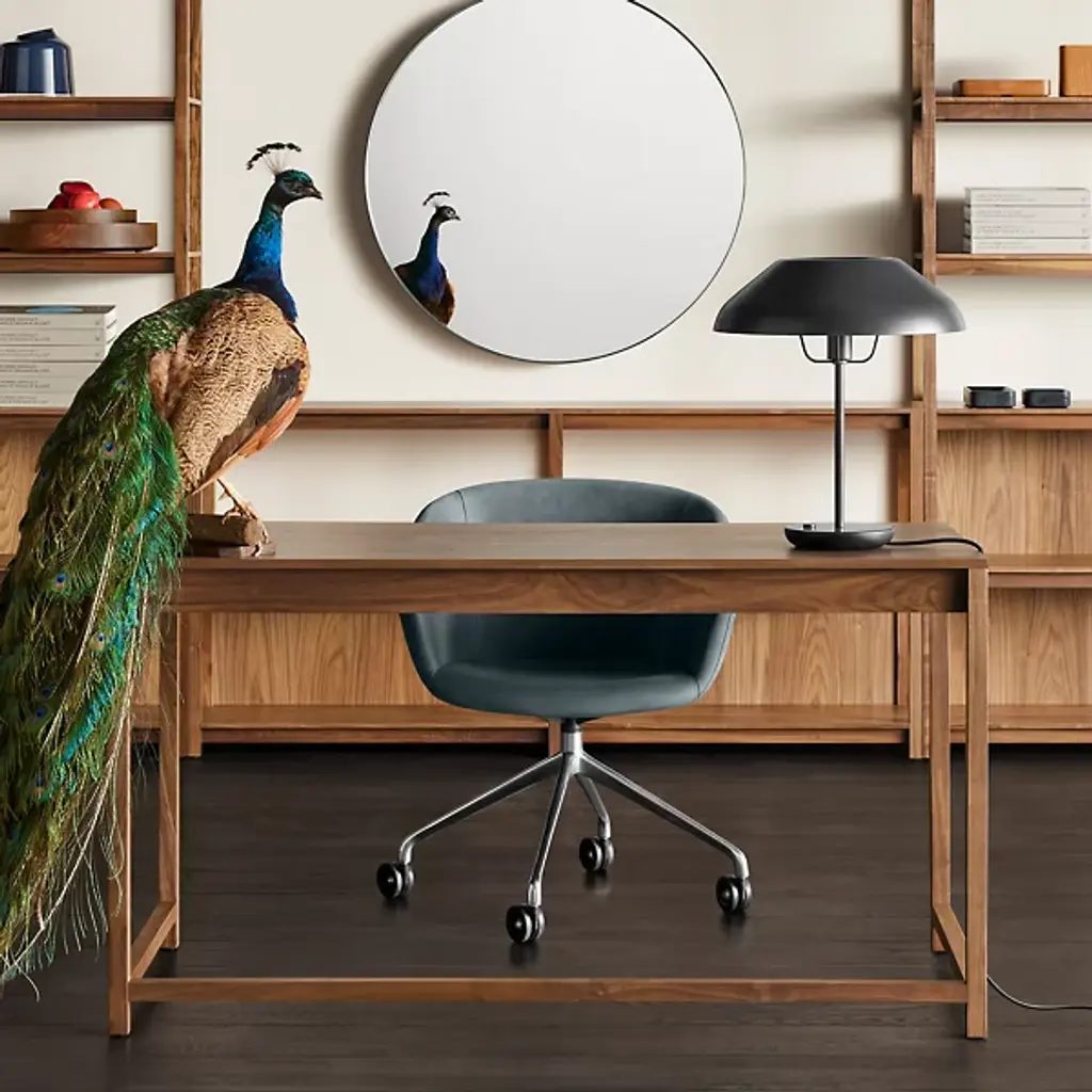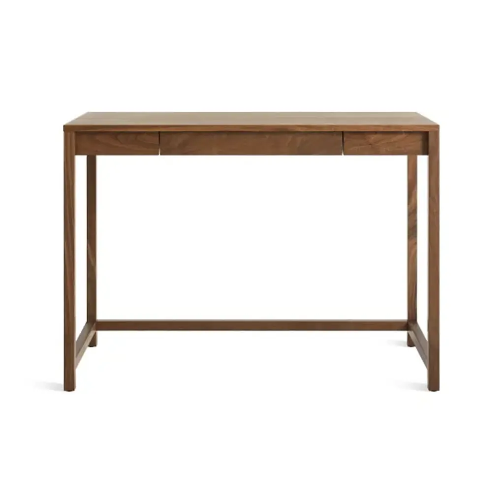Go into a study session with a clear mind with help from the clean design of the Open Plan Desk from Blu Dot. The desk pairs well with various home styles, thanks to its geometric construction. The piece also carries a wood and veneer construction from top to bottom, creating a durable and harmonious look. It stands with a slender framework that holds a smooth, rectangular table top. Underneath the tabletop lies a smooth sliding drawer for writing essentials and documents.