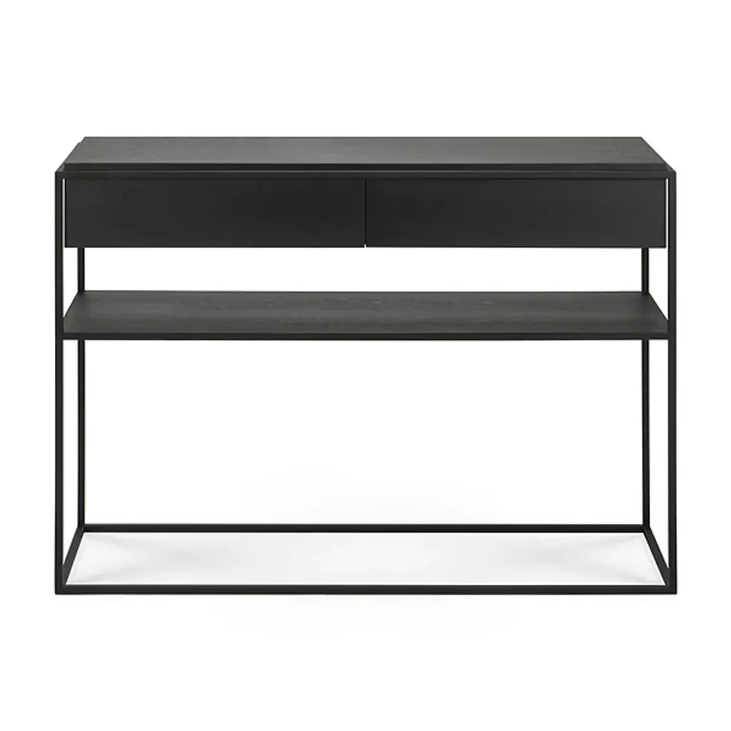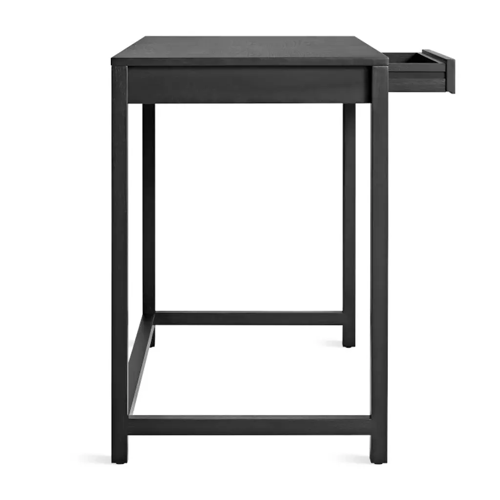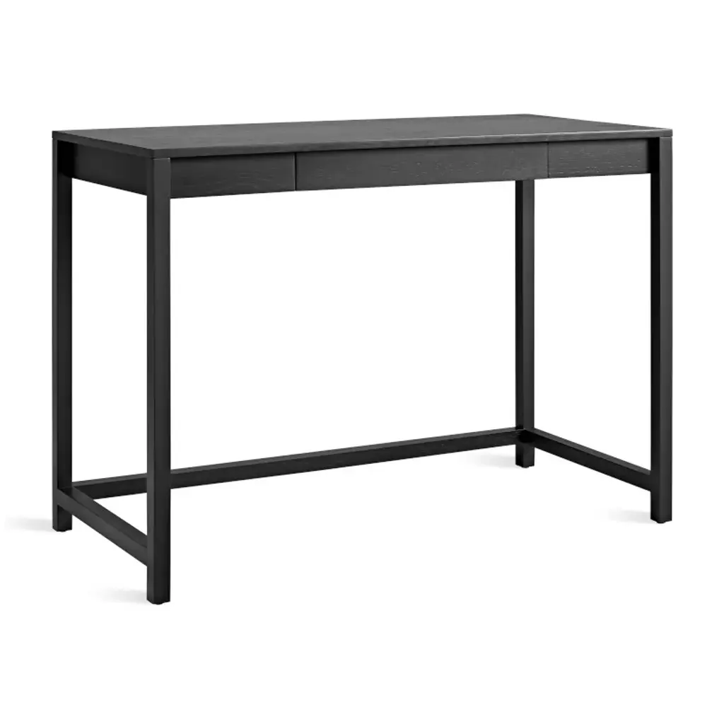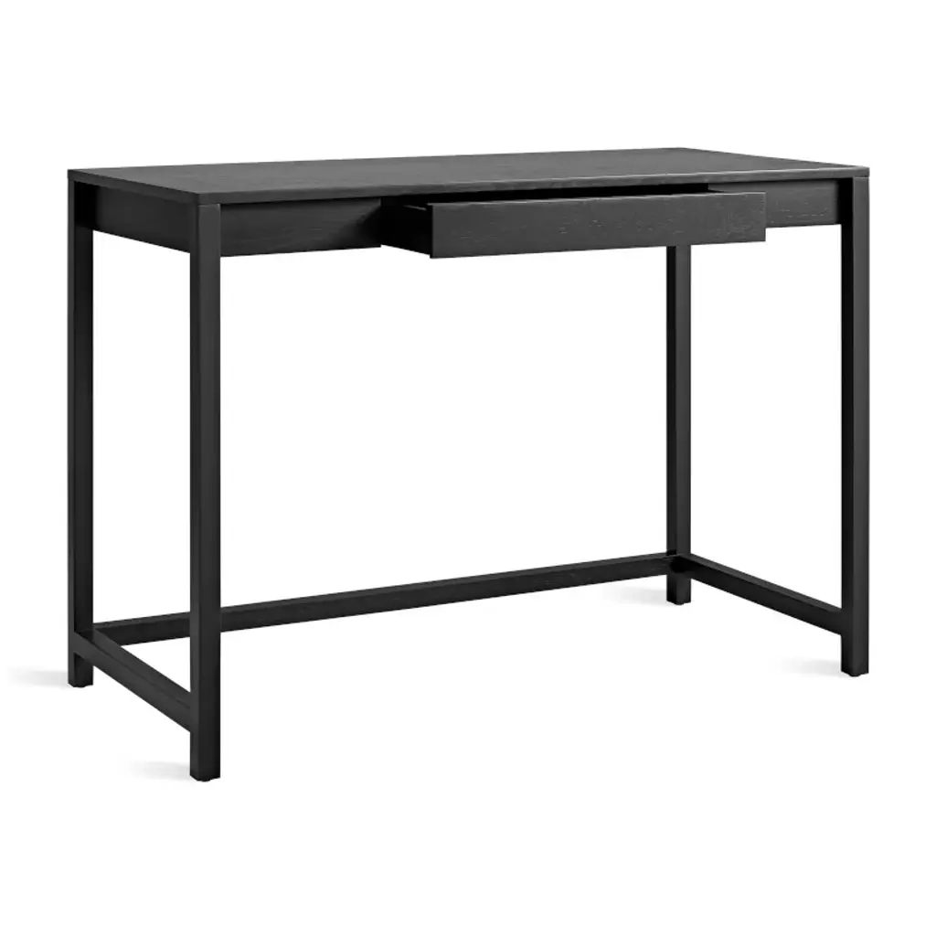 An architectural wood frame brings style and structure to your 9-to-5-ish. Inconspicuous drawer lets you stash your supplies so you can focus on your work for as long as your dog allows. Adjustable feet help you level up.