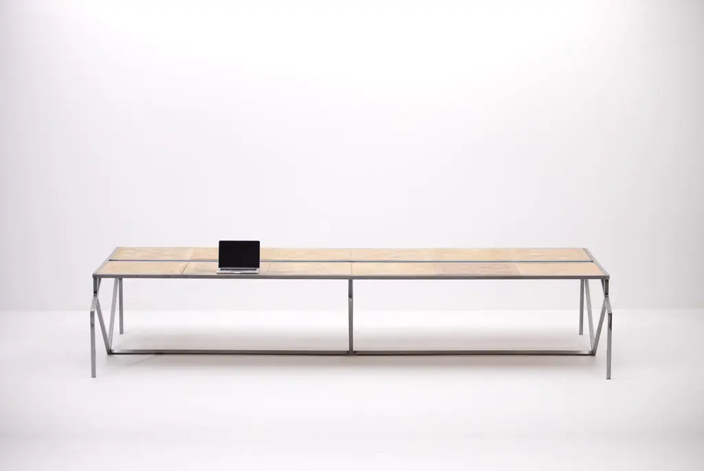 Please note that this listing is for the oum desk with a versailles parquet or florence parquet table surface (thickness of parquet 2cm). the oum desk is also available with various table surfaces made from exclusive marble (please see overview in the images with the various available choices). Furthermore, alternative dimensions are available (mazanli offers customisations). Should you be interested in a marble surface (or any other surface) or alternative dimensions,. oum is mazanli's largest piece of furniture with its impressive four meters in length. It was developed as a workstation for teams of up to eight people. despite its very impressive dimensions, the table manages not to block the room as a "giant." on the contrary, an impression of weightlessness is made possible by the welding of thin but highly robust square tubes (3cm x 3cm) made of krupp steel. the steel can be delivered untreated or alternatively it can come powder coated white or powder coated black. please note: the untreated version is really untreated. Scratches and all signs of welding (including the "rainbow effect" with iridescent colours) are clearly visible. In addition, the steel develops a patina over time that also includes rust. All this is intended and part of the design. If the mentioned effects are undesirable, we recommend choosing the powder-coated version in black or white, as these are protected and do not develop a patina.