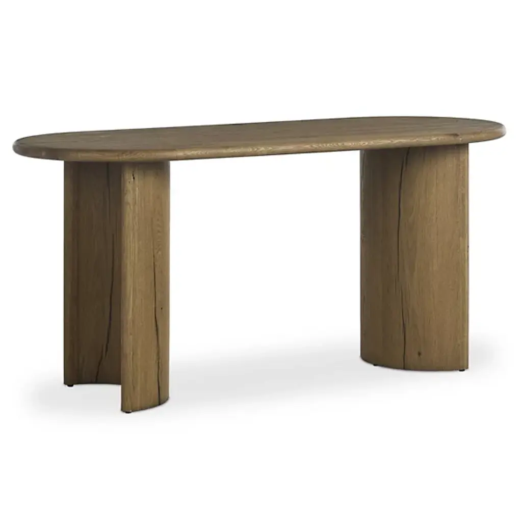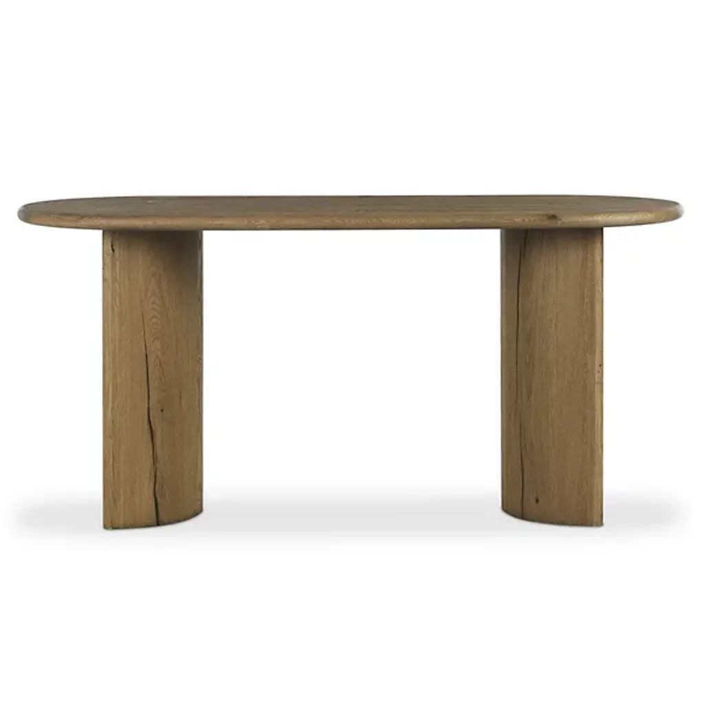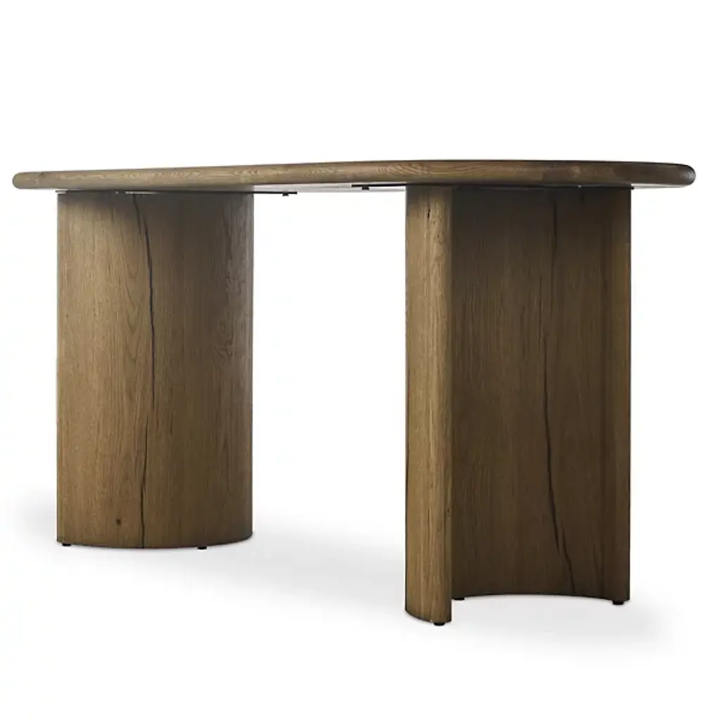 The Paden Desk from Four Hands turns the workspace into an artistic endeavor with crescent-shaped legs that support an expansive oval top. The acacia construction brings natural character to your office setup while maintaining a minimalist approach. This desk accommodates up to 100 pounds of your work essentials, making it ideal for focused productivity. The fluid lines and intentional design create a desk that inspires creativity without overwhelming your space. Its organic form encourages natural movement around the workspace, while the sturdy construction ensures stability during long work sessions.
