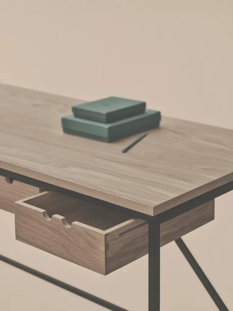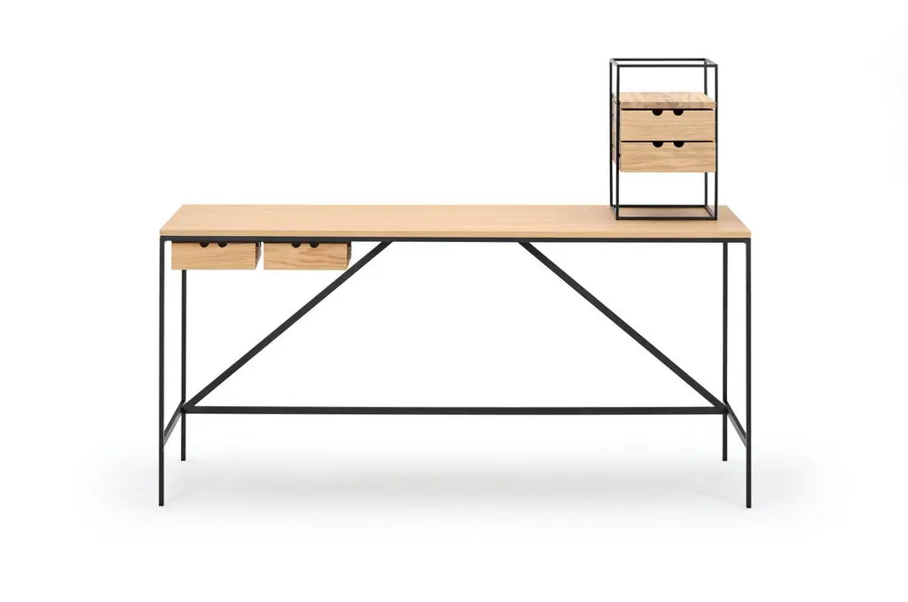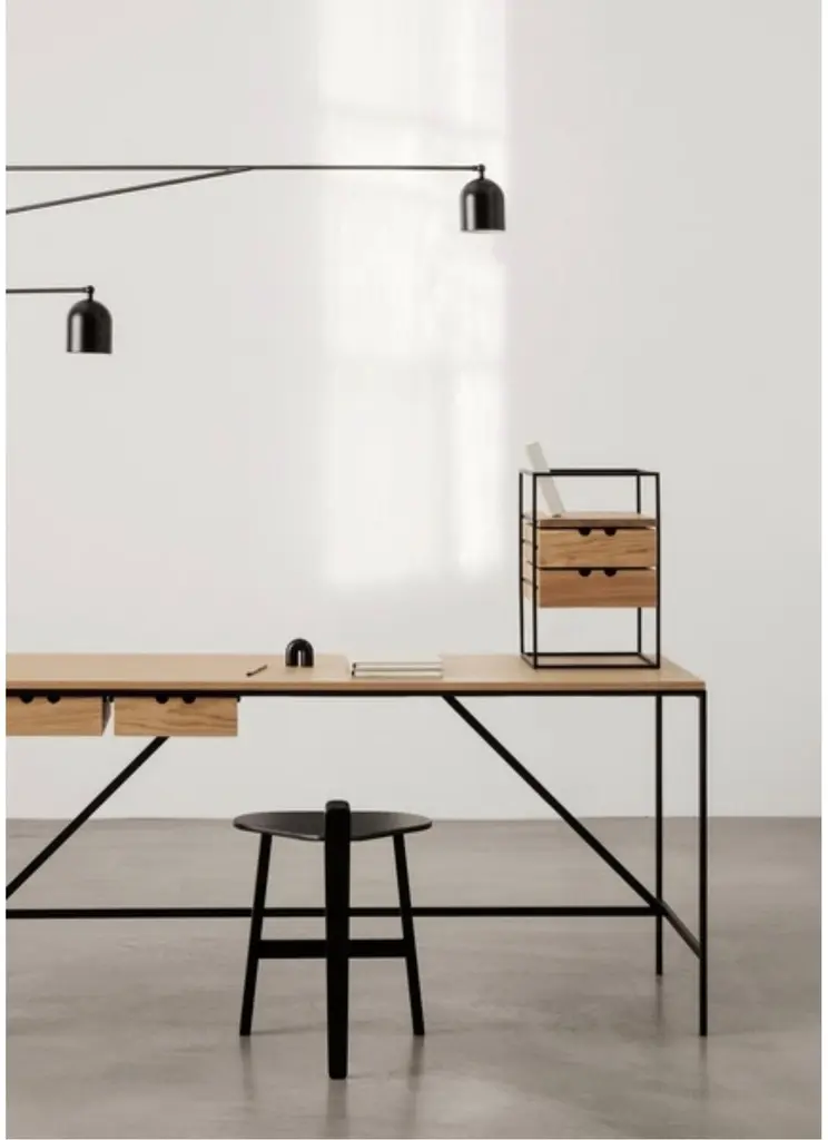 Paul Mccobb Set Cache Console & Cache Desk Organiser For Karakter The foundation of the Cache series, part of Paul McCobb’s extensive Planner series, is a beautifully simplistic and easy table with slim and straight steel legs, stripped from any details or ornament, leaving only small drawers that can be mounted individually or grouped on either side of the table for small keepings. The series is complimented with the matching Desk Organiser with two drawers and a shelf supported by a steel frame.A prominent figure in American mid-century design, Paul McCobb conceived the Planner series in the 1950s, a modular furniture series that brought modern design into middle-class American households. The aesthetic attribute of McCobb’s design is sleek and unadorned and at the same time warm and approachable. With its versatility and purity of form, the Planner series became one of the most successful commercial furniture lines of its era.The foundation of the Cache series, part of Paul McCobb’s extensive Planner series, is a beautifully simplistic and easy table with slim and straight steel legs, stripped from any details or ornament, leaving only small drawers that can be mounted individually or grouped on either side of the table for small keepings.If more storage and distinctiveness is needed, add the second piece in the series, the two-drawer organizer that resides on a slender leg construction as the table itself and has the same playful two-finger opening system as the drawers in the desk. The Desk Organiser can be placed on the desk or used as a stand-alone item next to sofas or beds.Product MaterialFrame in steel with textured black powder coating, table top in oak veneer with clear lacquer, optional drawers in solid oak with clear lacquerMeasurements Height72 cmWidth56 cmLength152 cmGeneral specificationsEnviromentIndoorRequires assemblyYesProduct MaterialFrame in steel with black powder coating, drawers in solid oak with clear lacquerMeasurements Height41 cmWidth27 cmDepth35 cmHeightsDrawer height: 8 cmImportant information regarding images of products:Please note that some of the images show other colors and variations of the model, these images are only to present interior design proposals. The item that is selling is on the first image.Important information regarding color(s) of products:Actual colors may vary. This is due to the fact that every computer monitor, laptop, tablet and phone screen has a different capability to display colors and that everyone sees these colors differently. We try to edit our photos to show all of our products as life-like as possible, but please understand the actual color may vary slightly from your monitorAbout the Design: Paul McCobb (1917-1969) was one of the leading contemporary furniture designers on the American design scene in the 1950s and 1960s. Over a timespan of twenty years he designed an impressive range of multi-functional furniture, accessories and textiles, as well as several notable interior design projects. McCobb often offered a playful take on traditional forms with hints of Scandinavian craftsmanship and international style clarity, often made with affordable and robust materials such as iron, solid wood and durable upholstery. Since McCobb’s early death in 1969 his designs have not been in production, but are now making their way back.About the manufacturer:Karakter is a Danish design company founded on a spirit of exploration, courage and an uncompromising attitude to quality. Rooted in the Scandinavian design tradition with an international outlook, Karakter presents a portfolio of furniture, lighting and objects that is relevant, honest, expressive and sometimes playful. Aspiring to build an enduring legacy, they work with contemporary designers such as Aldo Bakker and PlueerSmitt and present works by the masters Bodil Kjær, Achille and Pier Giacomo Castiglioni, Paul McCobb, Joe Colombo and Angelo Mangiarotti. Each piece has a clear, undeniable expression, ensuring it pride of place in private homes and public spaces worldwide.