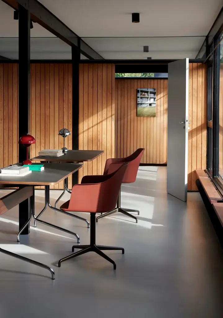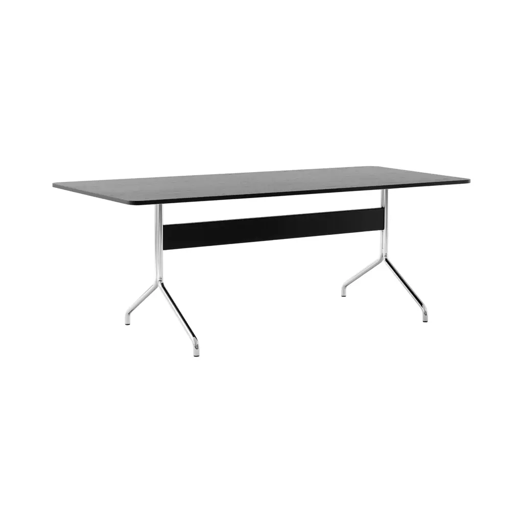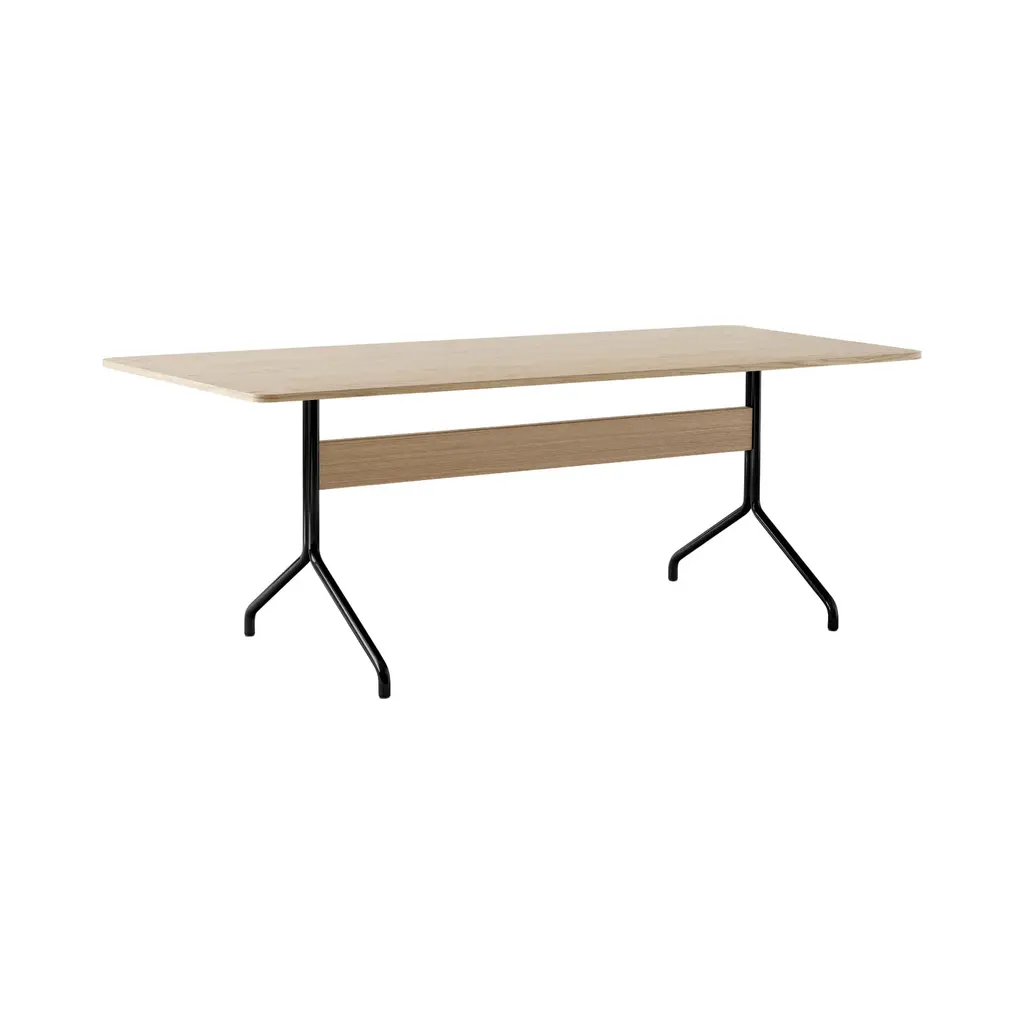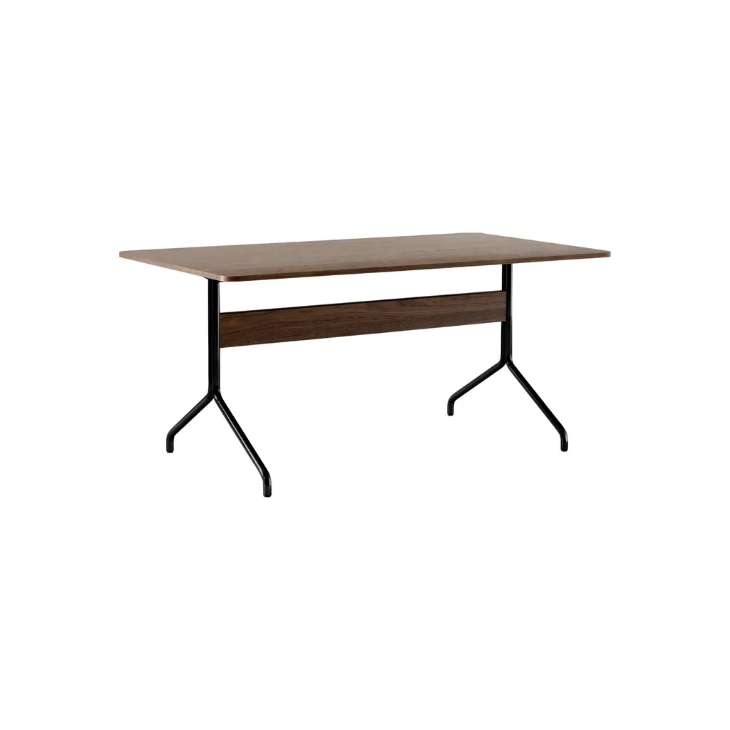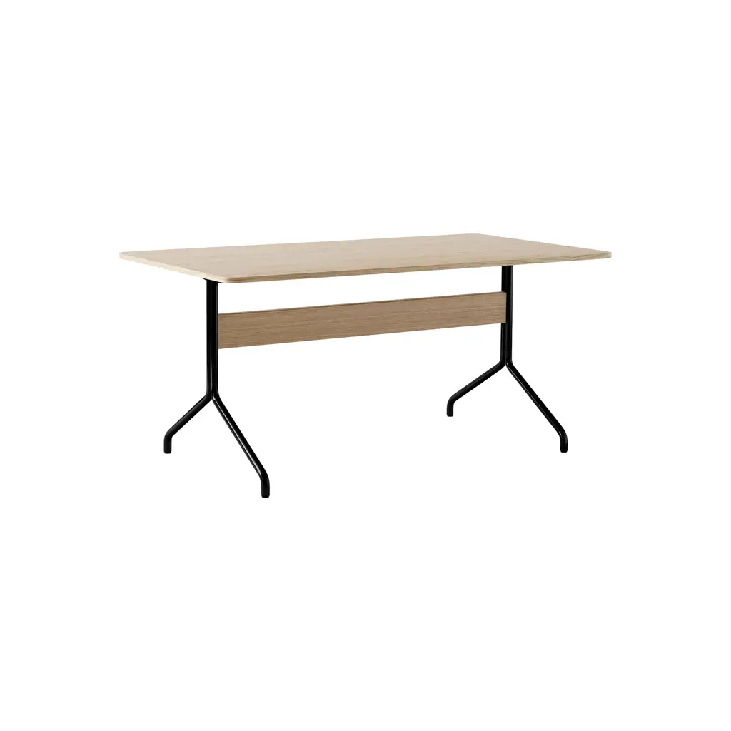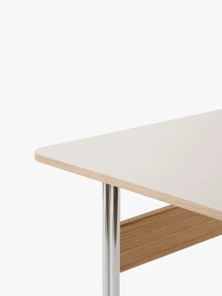 When Anderssen & Voll created their Pavilion chair series, the award-winning duo drew their design cues from the iconic Langelinie Pavilion. Now, this light and lyrical aesthetic has been translated into a compact desk intended to suit both office and home spaces. Designed at the start of the pandemic, the Pavilion desk took the demands of home-working into consideration with a version that boasts a back panel.MaterialSteel, wood veneer, Forbo linoleum.Production ProcessThe Pavilion desk is made of a tabletop laminated with linoleum and veneered edges. The legs are made from bent steel tubes.Tabletop FinishesBlack Linoleum w. black lacquered oakMushroom Linoleum w. lacquered oakIron Linoleum w. lacquered walnutMetal FinishesBlackChromeManufacturerProduced in Denmark by Kvist Industries A/S.