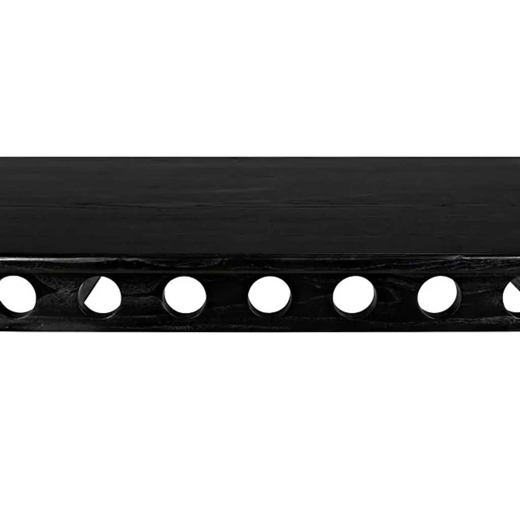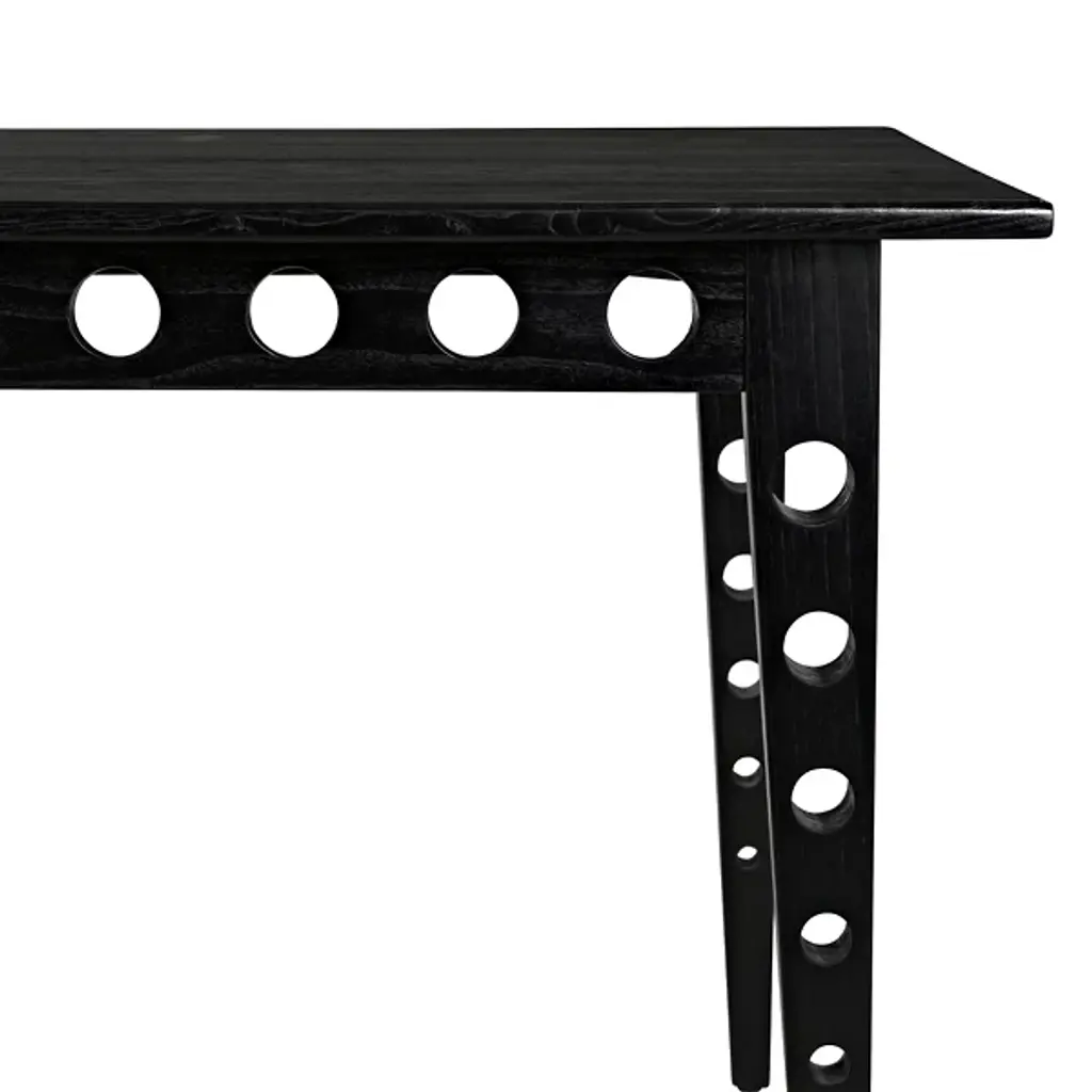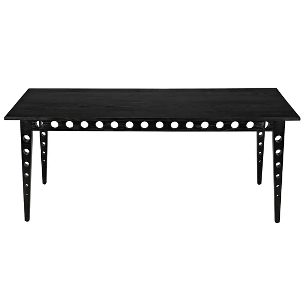 The Pericles Desk from Noir stands out with its perforated apron that adds unexpected lightness to its substantial form. Crafted from sungkai wood and veneer, this desk reduces furniture to its essential elements without sacrificing character. The table's clean horizontal plane provides ample workspace for productivity, while the patterned cutouts along the border prevent visual heaviness. Four tapered legs offer reliable support while maintaining a sense of openness. A refreshing alternative to desks that rely on excessive ornamentation, this piece excels through purposeful restraint and quality materials. An ideal workplace for those who value clarity and focus.
