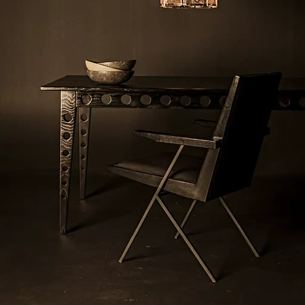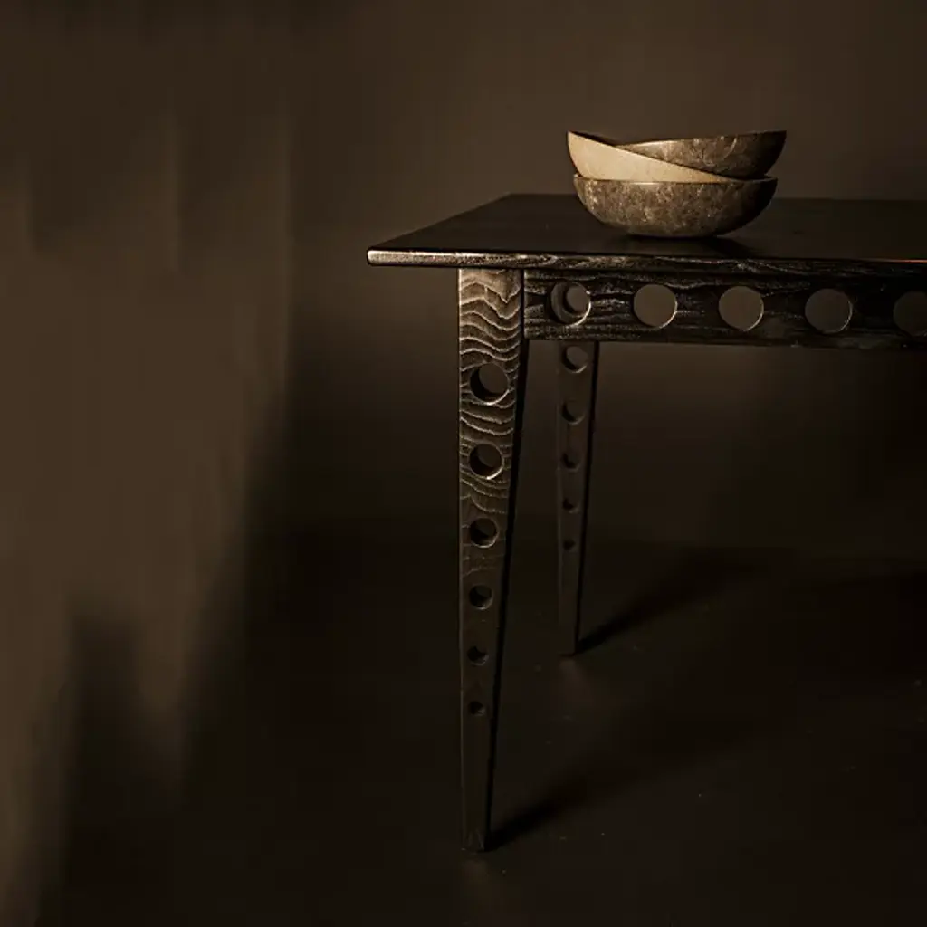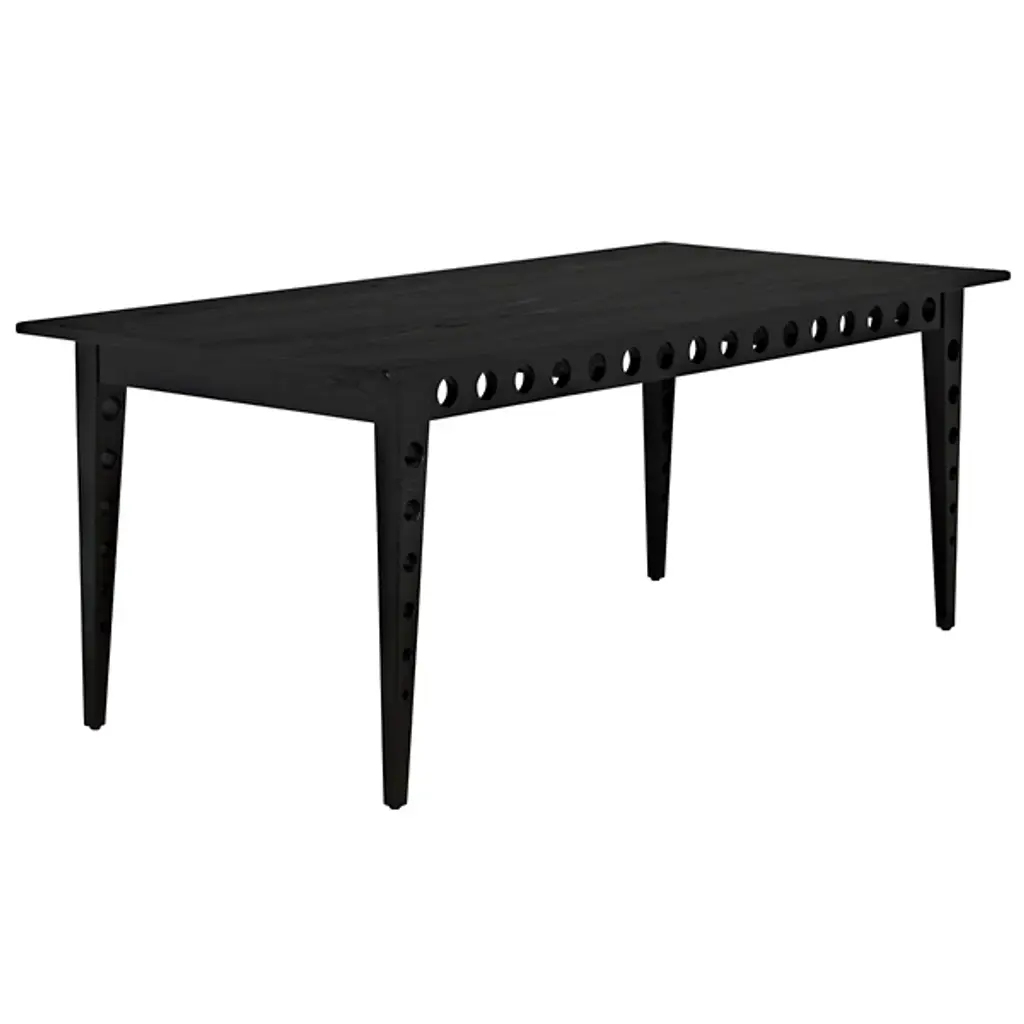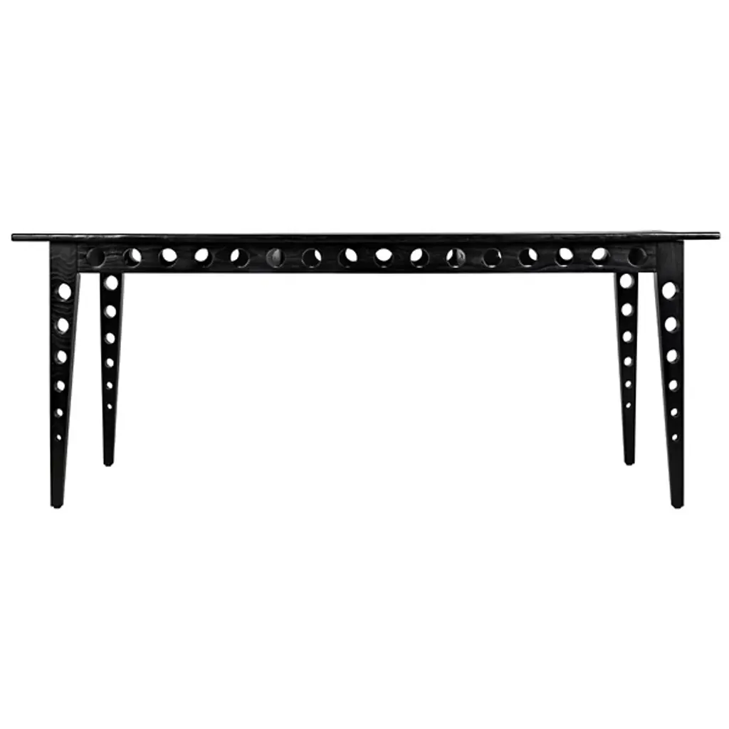 The Pericles Desk from Noir stands out with its perforated apron that adds unexpected lightness to its substantial form. Crafted from sungkai wood and veneer, this desk reduces furniture to its essential elements without sacrificing character. The table's clean horizontal plane provides ample workspace for productivity, while the patterned cutouts along the border prevent visual heaviness. Four tapered legs offer reliable support while maintaining a sense of openness. A refreshing alternative to desks that rely on excessive ornamentation, this piece excels through purposeful restraint and quality materials. An ideal workplace for those who value clarity and focus.
