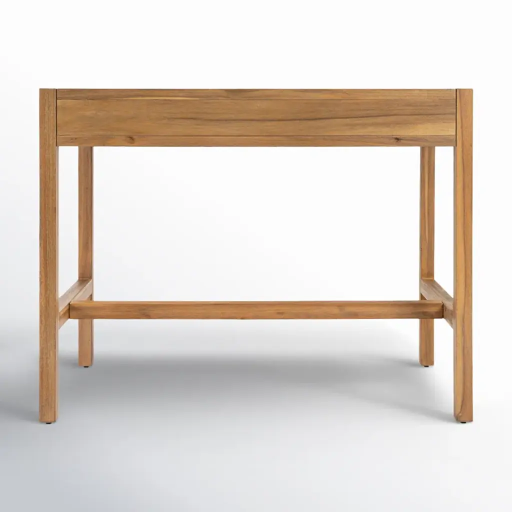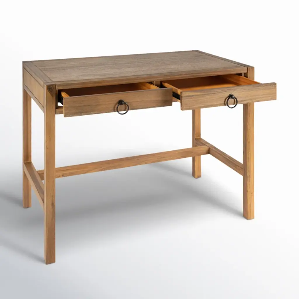 This beautiful writing desk is a harmonious blend of vintage and modern design. With an open, airy satin gold base and convenient storage drawer, this desk will be the centerpiece of an office, living space, or bedroom. Expertly crafted from mango wood solids and engineered wood on a hand forged iron base, it features an alluring bone inlay botanical motif dramatically framed within a black resin background.