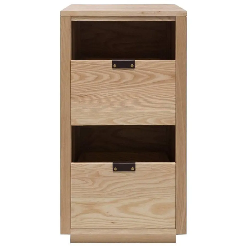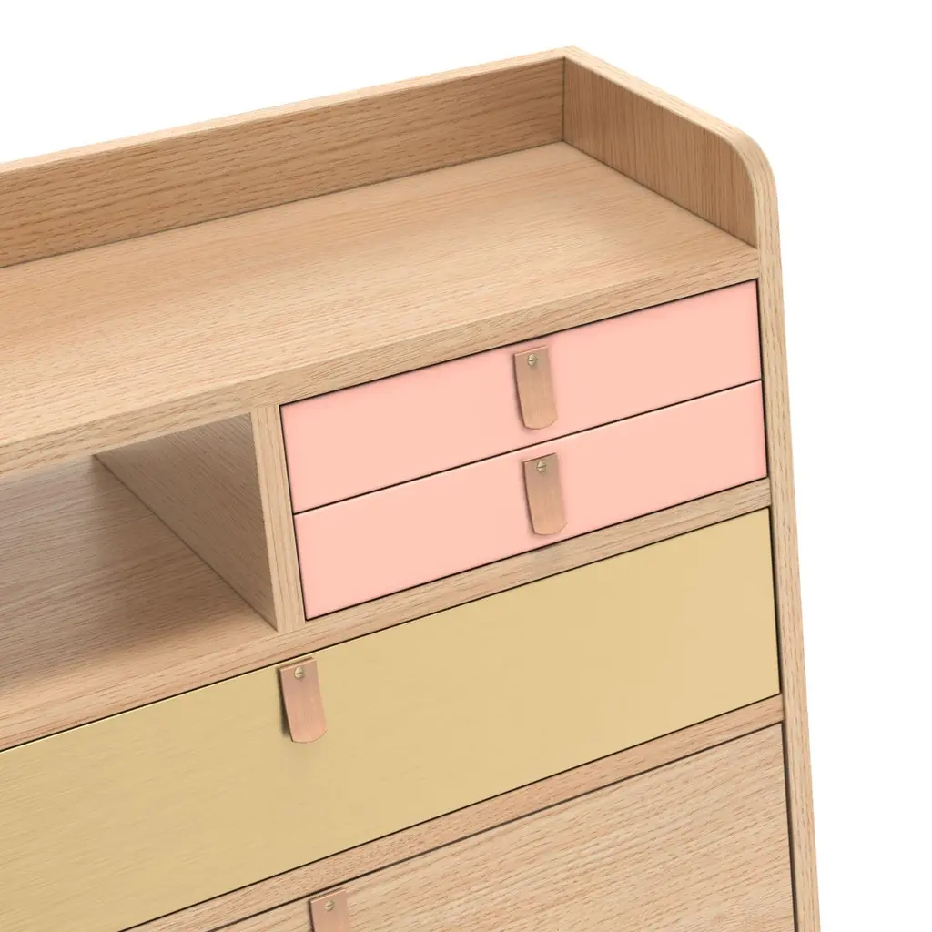 Petrol Blue Drawers Gaston Floating Writing Desk 60 cm Natural Walnut by HARTODimensions: W 60 x D 32 x H 72 cm. Materials: MDF wood veneer, Lacquered MDF, Leather.Weight: 22.0 kgGaston has everything a big boy needs and yet it takes up so little space! A wall-mounted secretary, to free up floor space while having everything at hand, and to hide what you don't want to show. 3 drawers, a spacious niche for a computer, leather handles for style: Gaston is perfect for creating an office corner in a living room or bedroom. Gaston is made in Portugal, in oak veneered MDF, lacquered MDF and leather handles. Gaston is a creation of Florence Watine.About: Hartô, a French furniture brand, was born in 2012 from the desire of its founders to offer a different design, less elitist, which combines the useful with the beautiful. A light, joyful design, as if to say "I'm fed up" (with boring furniture): this is the meaning of the word harto in Spanish. The first pieces of the collection, the desks offer a new vision on a market that was then quite sparse, and offer functional tips and a joyful, colorful design, out of step with the archetypes. The foundations of the Hartô spirit are laid: a free spirit, a design of the useful, curved shapes, colors. In a word: creativity! And of course, from the beginning, this translates into collaborations with talented designers. This spirit crosses the years and the collections, evolves, refines itself, without ever denying itself. Today, audacity and creativity are still there, and are translated in a subtle way, all in elegance. At Hartô, the freedom to create is also based on strong commitments to quality and durability: the furniture is made by the best local craftsmen, who use noble materials to give life to pieces that will last through the ages.