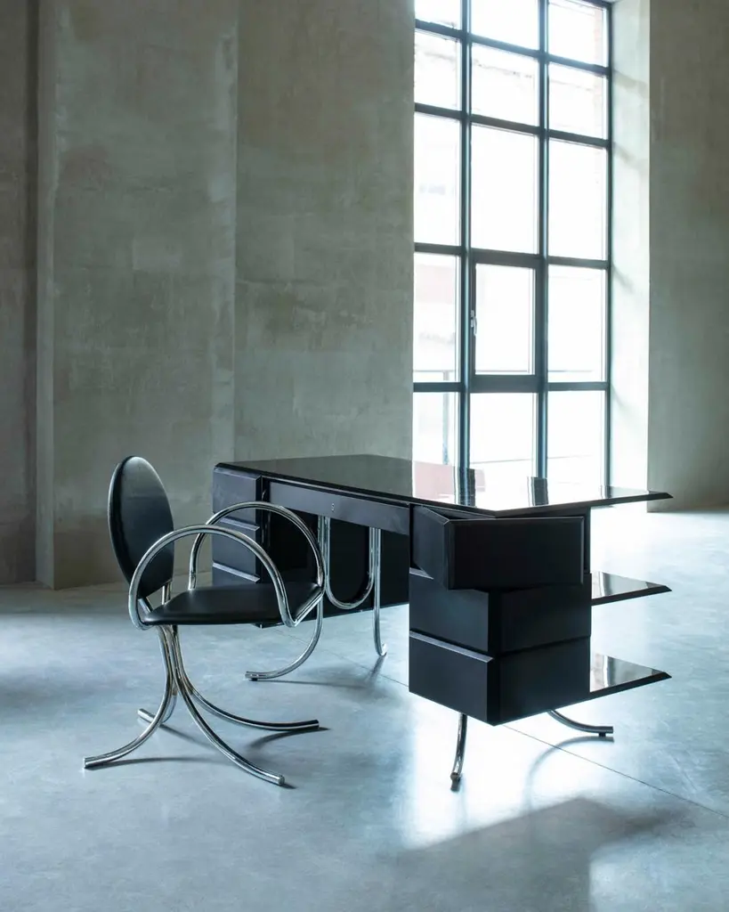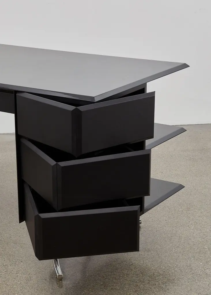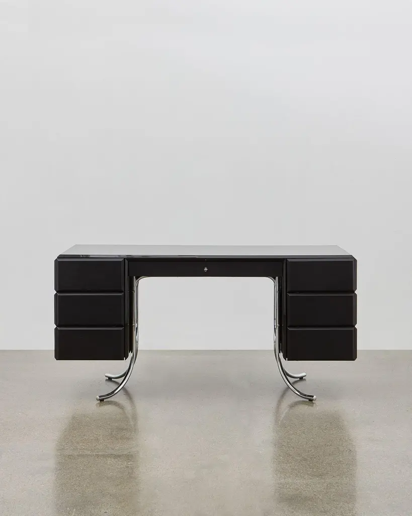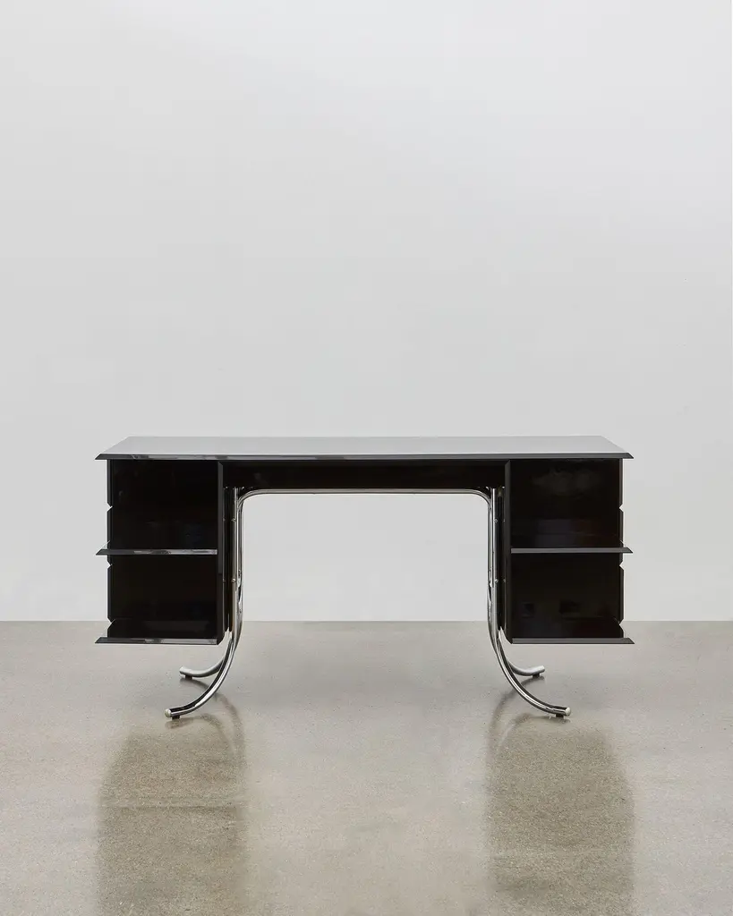 Ph Office Desk, Chrome, Black Painted Polished, Leather On Panles, Satin Matt