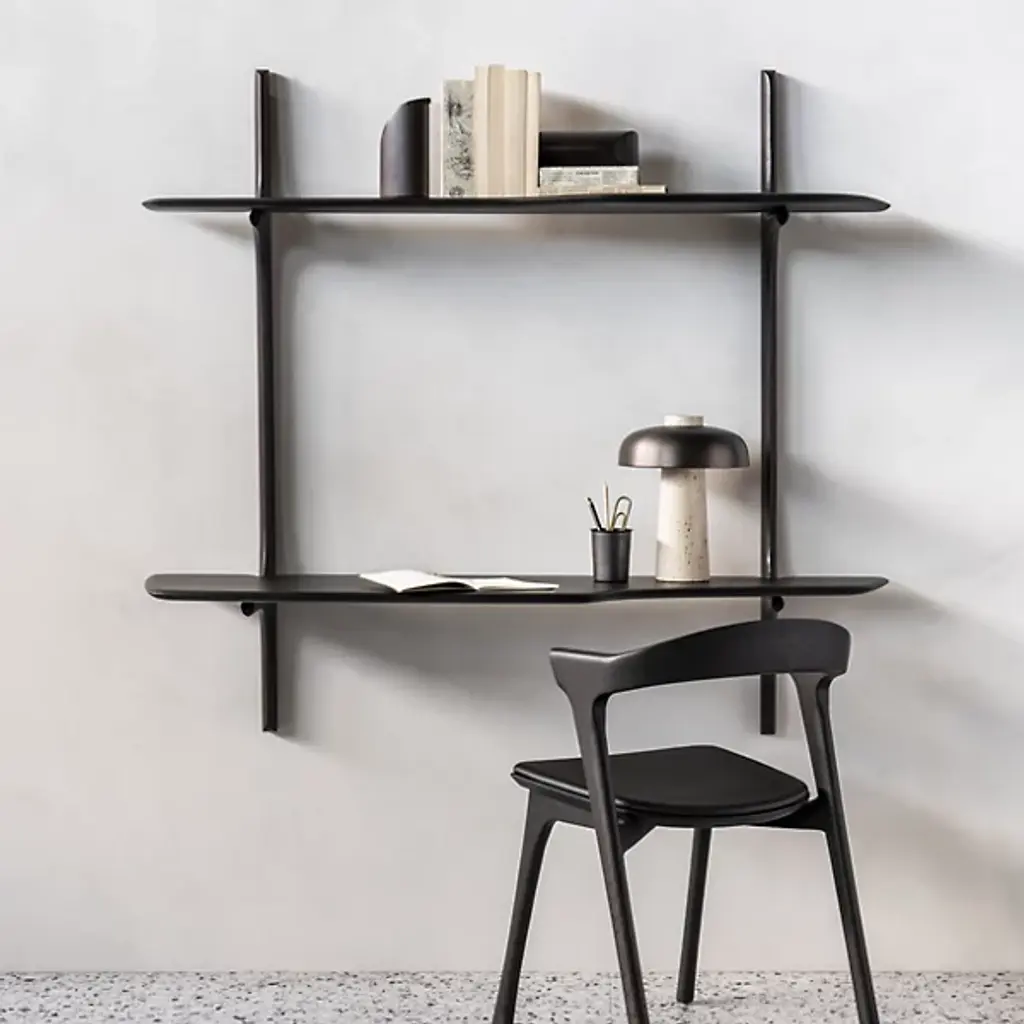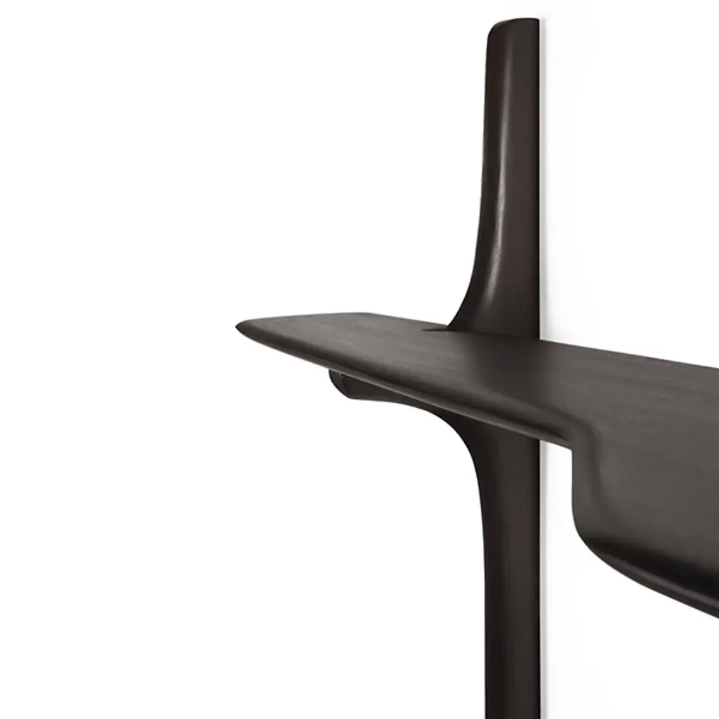The PI Wall Mounted Desk from Ethnicraft offers intelligent space utilization for compact living. The floating design, fashioned by Alain Van Havre, creates an efficient workspace without consuming floor area. The desk's proportions provide comfortable room for a laptop and essential work items. Hand-finished mahogany construction reveals natural wood characteristics through careful craftsmanship. This piece is perfect for urban apartments or any space requiring adaptable work surfaces.