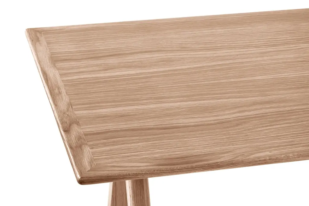 Meet our Porter Desk, showcasing modernist simplicity. This understated, piece pairs clean-lines and geometric forms. A simple, yet solid, bullnosed wooden top appears to float atop a pair of triangular-shaped supports. Bench made, in Los Angeles, of white oak, this piece celebrates the natural beauty of the materials.Shown here in our Natural Oak finish, this piece is also available in Summer Aged Oak, SunKissed Oak, Riviera Oak, Canyon Oak, Dark Walnut and Heirloom Walnut. Dimensions: 60" L x 28" D x 29" HAll of our pieces are benchmade in Los Angeles by local artisans. Current lead time: 16-22 Weeks + transit time. Inquire about customizations, alternate materials & finishes.About August Abode:August Abode is a moving portrait of California life, an invitation to reconnect with the allure of nature to enhance our everyday lives. Founded in Los Angeles in 2019 by designer Stefani Stein, August Abode is an artisan-made home collection capturing the West Coast spirit of endless summer. We make relaxed and refined statement essentials inspired by the beauty of living in the golden state.Through observation and abstraction of nature, we design furniture and wallcoverings in which form, function, and fine craftsmanship have the ability to positively impact our everyday lives through our homes. We are committed to making responsibly, not overproducing. Our view is to make future heirlooms. Discouraged by the impact of Los Angeles landfills being the largest in the county, we aim to reduce our participation in the epidemic of thoughtless production. Our made-to-order pieces encourage a steady flow of business to LA’s rich artisan trade community, while keeping our production process local and environmentally ethical. We are investing in the next generation of skilled makers, to encourage a sustainable and vertical model that reduces wasteful production.
