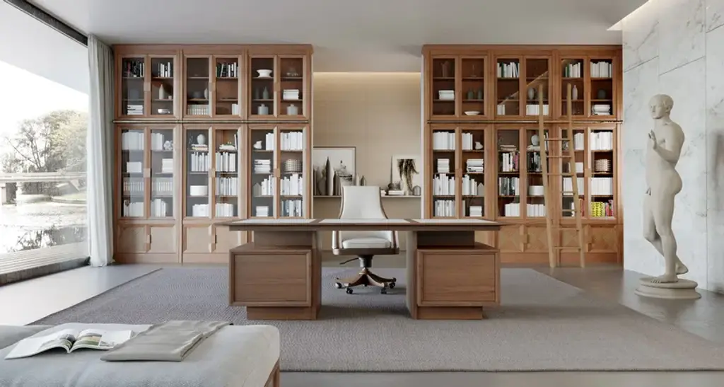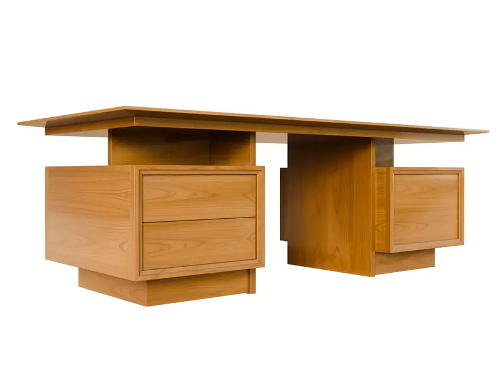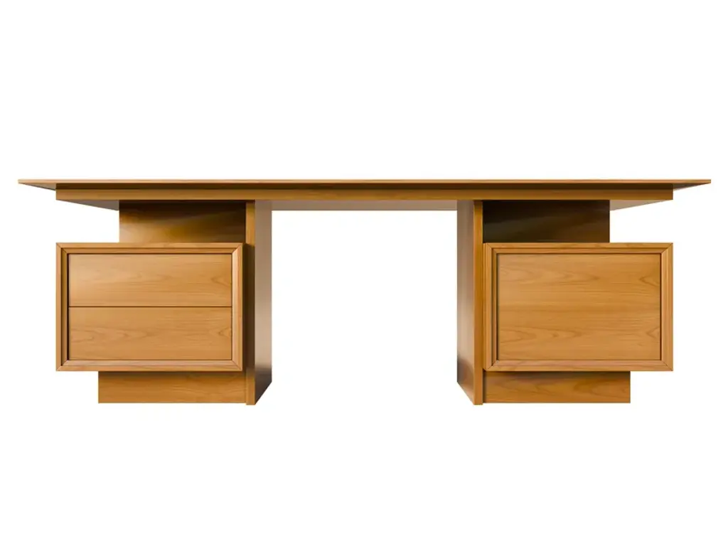 Solid wood desk with drawers by Morelato.The PRESIDENT armchair is an important office swivel chair, with a wooden frame placed on a steel base with wheels and a shock absorber and adjustable in height. As a new model in the Biedermeier collection, the particular shape of its armrests and its back characterize the PRESIDENT. Elegant in all its details.