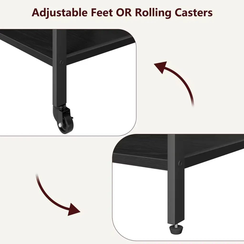 PRINTER STAND WITH CHARGING STATION: The power strip of the rolling printer stand has 2 AC outlets and 2 USB ports to allow you to plug in multiple appliances, meeting your demand to utilize devices simultaneously. The built-in power board has overload protection and leakage protection functions, all for safety reasons.