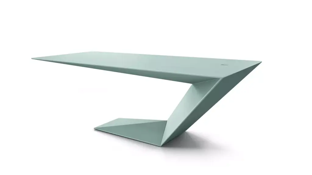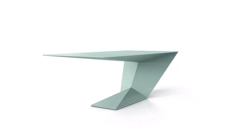 Based on the principle of fighter jets evading radar, Daniel Rode designed Prismo to defy the laws of gravity with its spectacular cantilever and the prismatic elegance of triangular shapes.