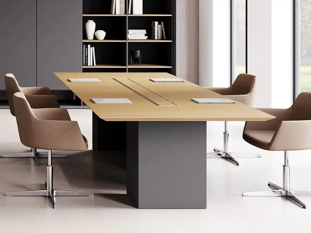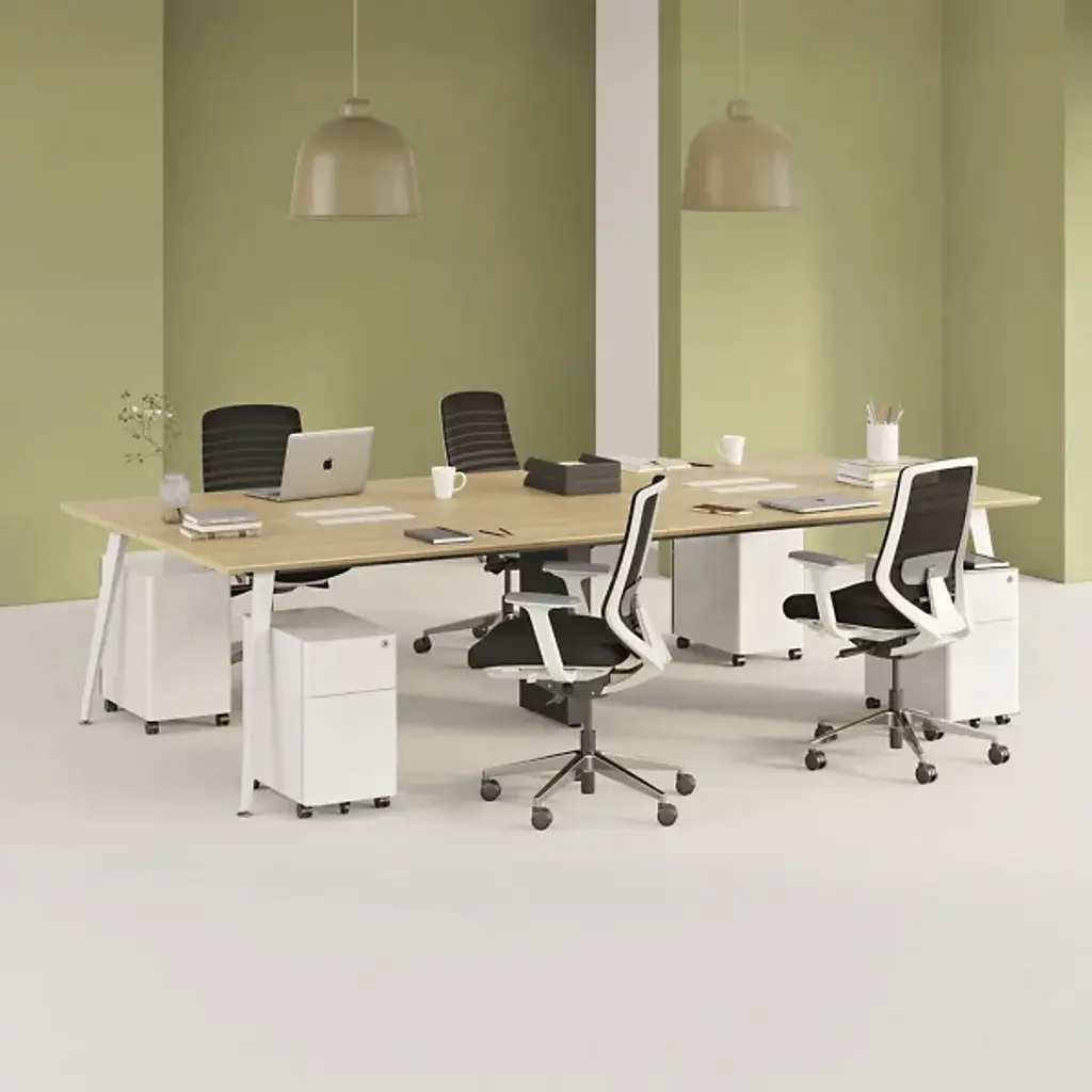 The Quad Desk from Branch is designed to bring teams together while keeping workspaces organized and efficient. Built with collaboration in mind, this contract-grade workstation comfortably seats four or more with a modular design that can link desks and adapt as teams grow. A durable laminated MDF top resists stains and impacts, while a sturdy steel frame with a central wire column ensures stability and smart cable management. Brushed grommets route cables to provide a clean, clutter-free workspace, making it a stylish and practical solution for open offices.