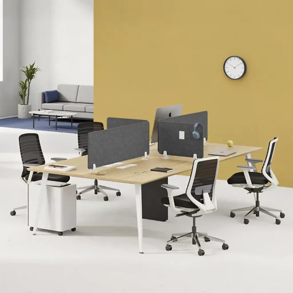 The Quad Desk from Branch is designed to bring teams together while keeping workspaces organized and efficient. Built with collaboration in mind, this contract-grade workstation comfortably seats four or more with a modular design that can link desks and adapt as teams grow. A durable laminated MDF top resists stains and impacts, while a sturdy steel frame with a central wire column ensures stability and smart cable management. Brushed grommets route cables to provide a clean, clutter-free workspace, making it a stylish and practical solution for open offices.