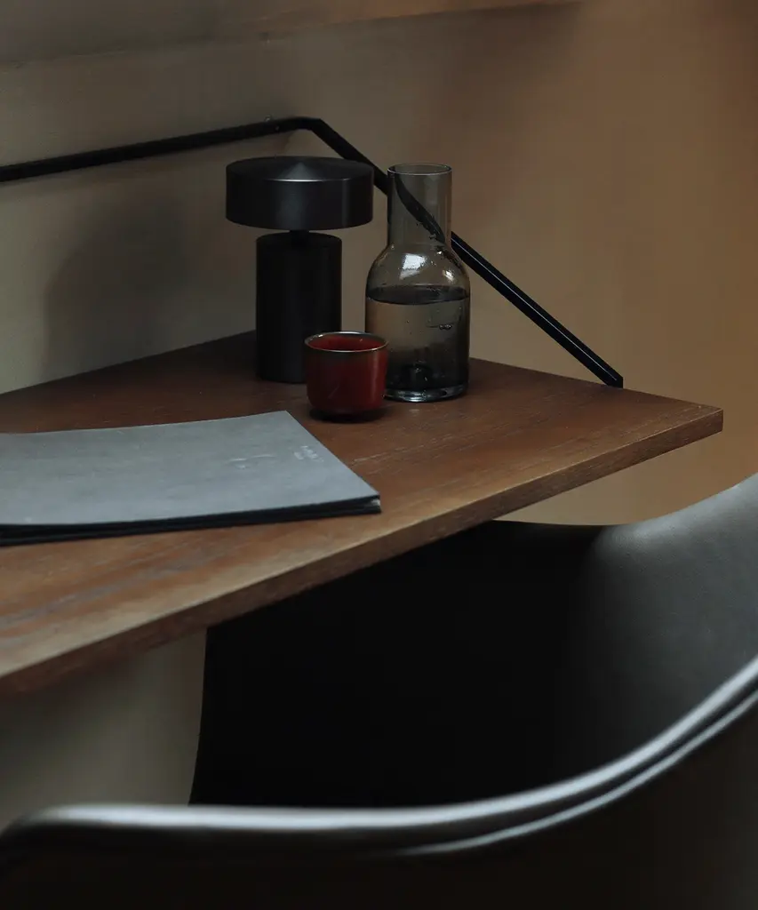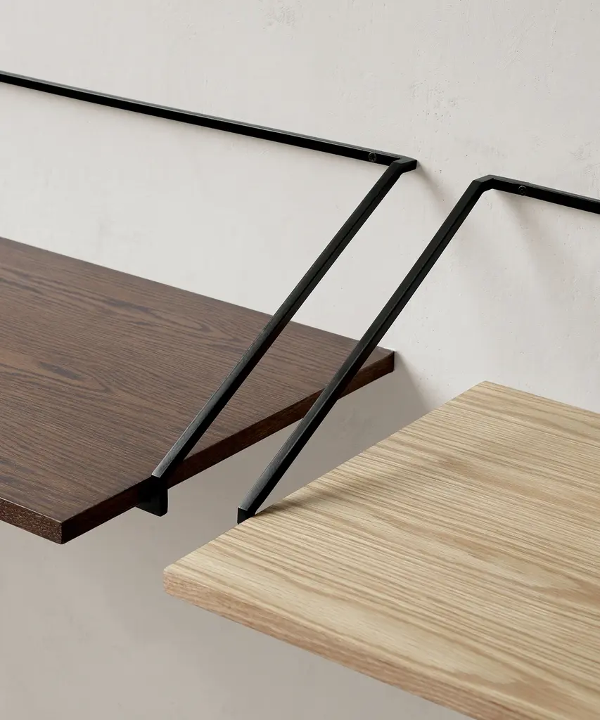 MENU’s new Rail Desk, imagined by Japanese designer Keiji Ashizawa, explores the way in which we use space and how design elements can be adapted to serve different functions. Looking to the world of architecture, the neat, precision-made piece conveys a sense of serene practicality. With multiple functions – as a desk, counter or shelf to store books, hung at any height you choose – it lends itself to almost any setting and fits neatly into living areas as well as bedrooms where space is at a premium. The minimalist steel bracket attaches to a wall and takes its cues from the handrail of a staircase. The wooden platform, available in natural or stained oak, provides a tactile contrast to the precision metalwork. “Neat. Serene. Practical. This small desk has multiple functions; as a little library or workspace, or as additional counter space. The beautiful design fits into any space, and the combinational of tactile wood and lightweight steel create an expression of minimal beauty.” – Keiji Ashizawa Produced by Danish design publisher, Audo Copenhagen.