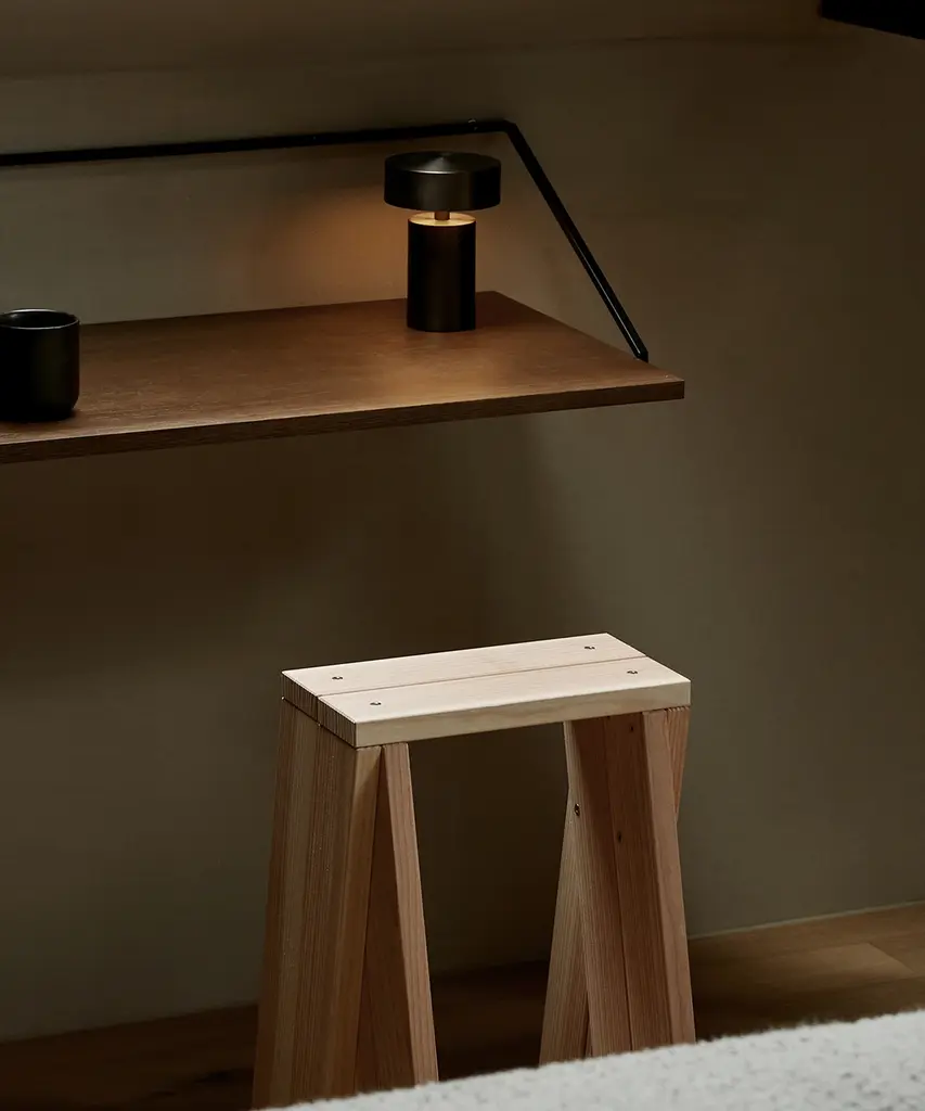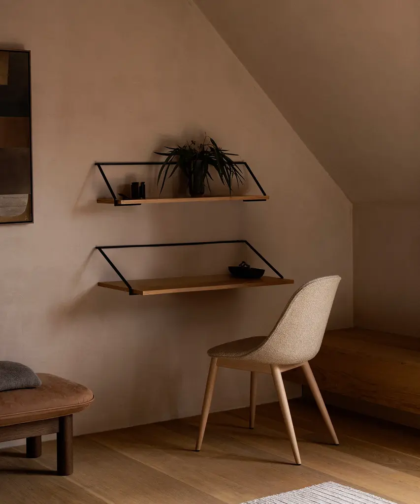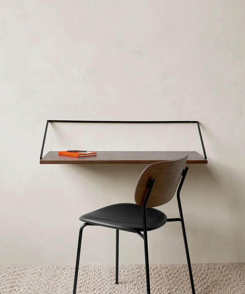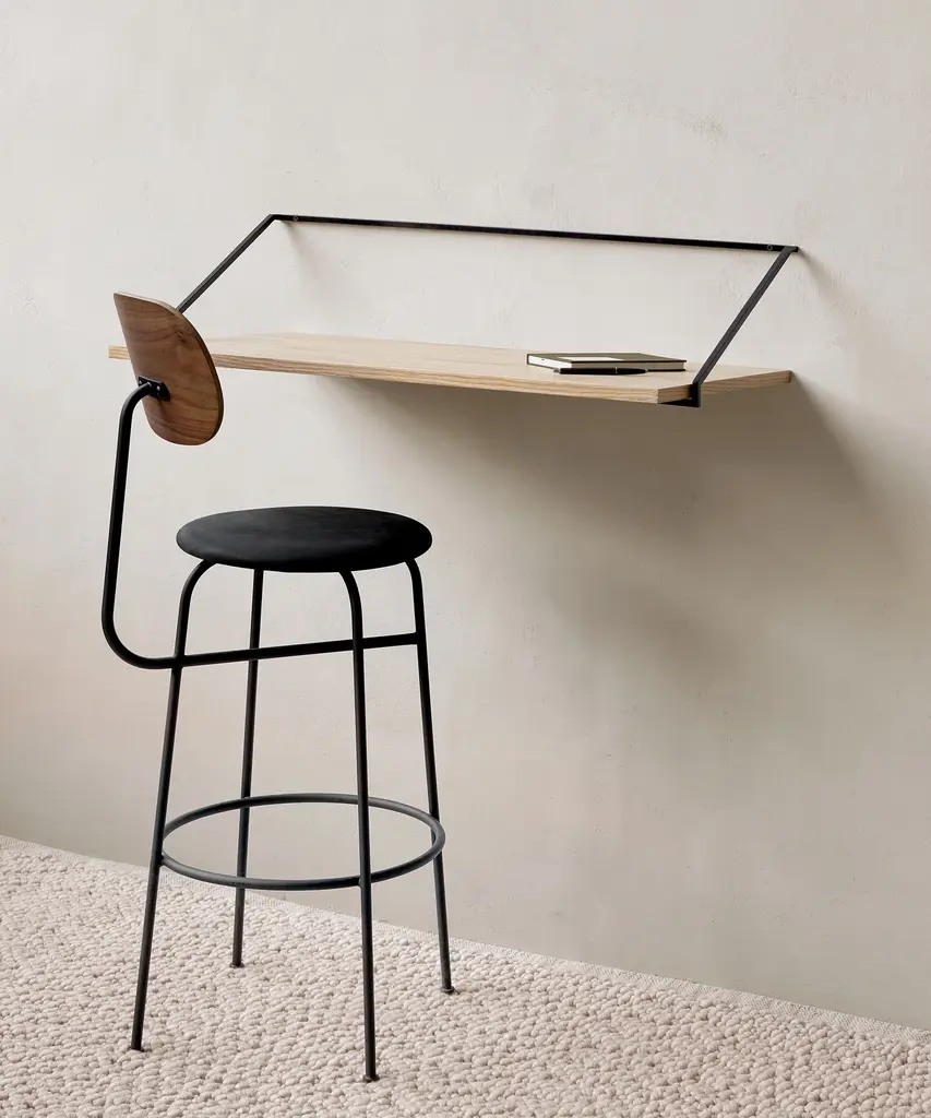 MENU’s new Rail Desk, imagined by Japanese designer Keiji Ashizawa, explores the way in which we use space and how design elements can be adapted to serve different functions. Looking to the world of architecture, the neat, precision-made piece conveys a sense of serene practicality. With multiple functions – as a desk, counter or shelf to store books, hung at any height you choose – it lends itself to almost any setting and fits neatly into living areas as well as bedrooms where space is at a premium. The minimalist steel bracket attaches to a wall and takes its cues from the handrail of a staircase. The wooden platform, available in natural or stained oak, provides a tactile contrast to the precision metalwork. “Neat. Serene. Practical. This small desk has multiple functions; as a little library or workspace, or as additional counter space. The beautiful design fits into any space, and the combinational of tactile wood and lightweight steel create an expression of minimal beauty.” – Keiji Ashizawa Produced by Danish design publisher, Audo Copenhagen.