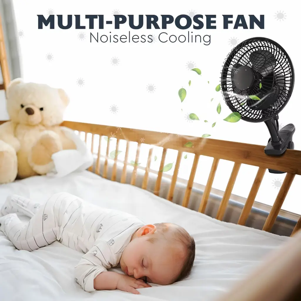Ram Pro Clip-On Fan The Problem: You have a work desk where the air of the ceiling fan does not reach you. It becomes very uncomfortable when the weather is hot and humid thereby making it even more difficult as well as uncomfortable for you. You have a mini fan with you at your home but the quality of the blades and the fan as a whole is not at all good which is why you are hesitating to use it at the times of your need. Moreover, the speed of the fan is not so good which makes the product unsuitable for use. Our Solution: Our clip-on fan is just the perfect thing which you need for the purpose of making it comfortable for you with some air in a hot and humid weather. With the help of the fan, you can get air at any place you want without facing any kinds of problems. The blades of the mini clip fan are of a very good quality and is extremely durable in nature. This is the reason as to why you can use the fan without any kind of hesitation. Moreover, the perfect dimensions of the product make it perfectly suitable and convenient to use. 6 Inch Size The mini clip fan with blades is of 6 inch in size. The ideal size of makes the product perfect for its intended purpose of use. Possesses a Clip In an addition to this, the presence of the clip allows the fan to very easily clip on to any surfaces with a strong clamp. Durable in Nature The mini fan with clip has a strong and sturdy construction. The clip-on fan comes with tough and break resistant ABS plastic blades. Adjustable Tilt The mini clip fan has an adjustable clip for appropriately aiming the flow of air. The fan a good speed with a whisper quiet operation. Applications are Great The clip fan is readily used for the purpose of getting some air on the desks, worktops and a number of other places as well.