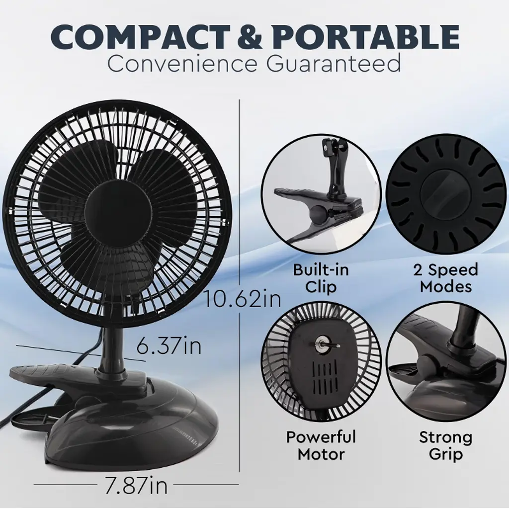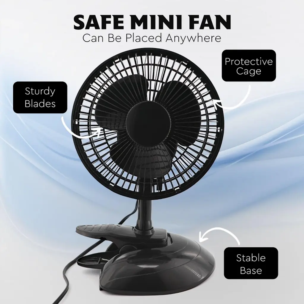 Rampro Portable Desk And Clip On Fan, 6 Inch Fans Small And Quiet Plug In, Small Personal Cooling Fan For Desk Home Office, 2 Speed, Adjustable Tilt