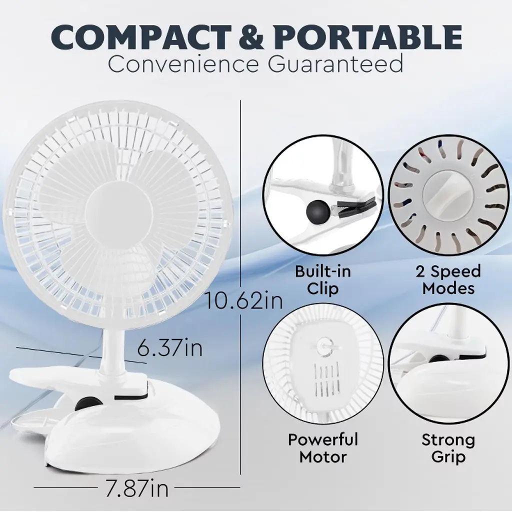 Rampro Portable Desk And Clip On Fan, 6 Inch Fans Small And Quiet Plug In, Small Personal Cooling Fan For Desk Home Office, 2 Speed, Adjustable Tilt