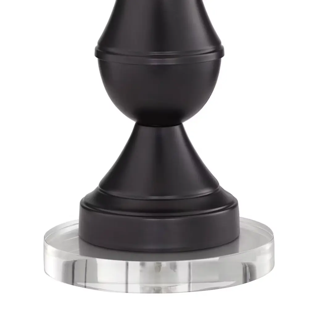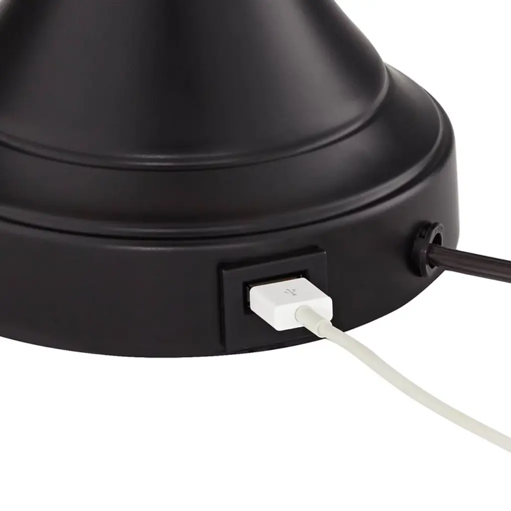 Add some style and lighting to any corner of your home with this pair of modern looking table lamps. The stunning bronze finish looks great with the oatmeal shades. Each table lamp has a USB port that lets you charge your devices easily. Each lamp has a 7" round riser.