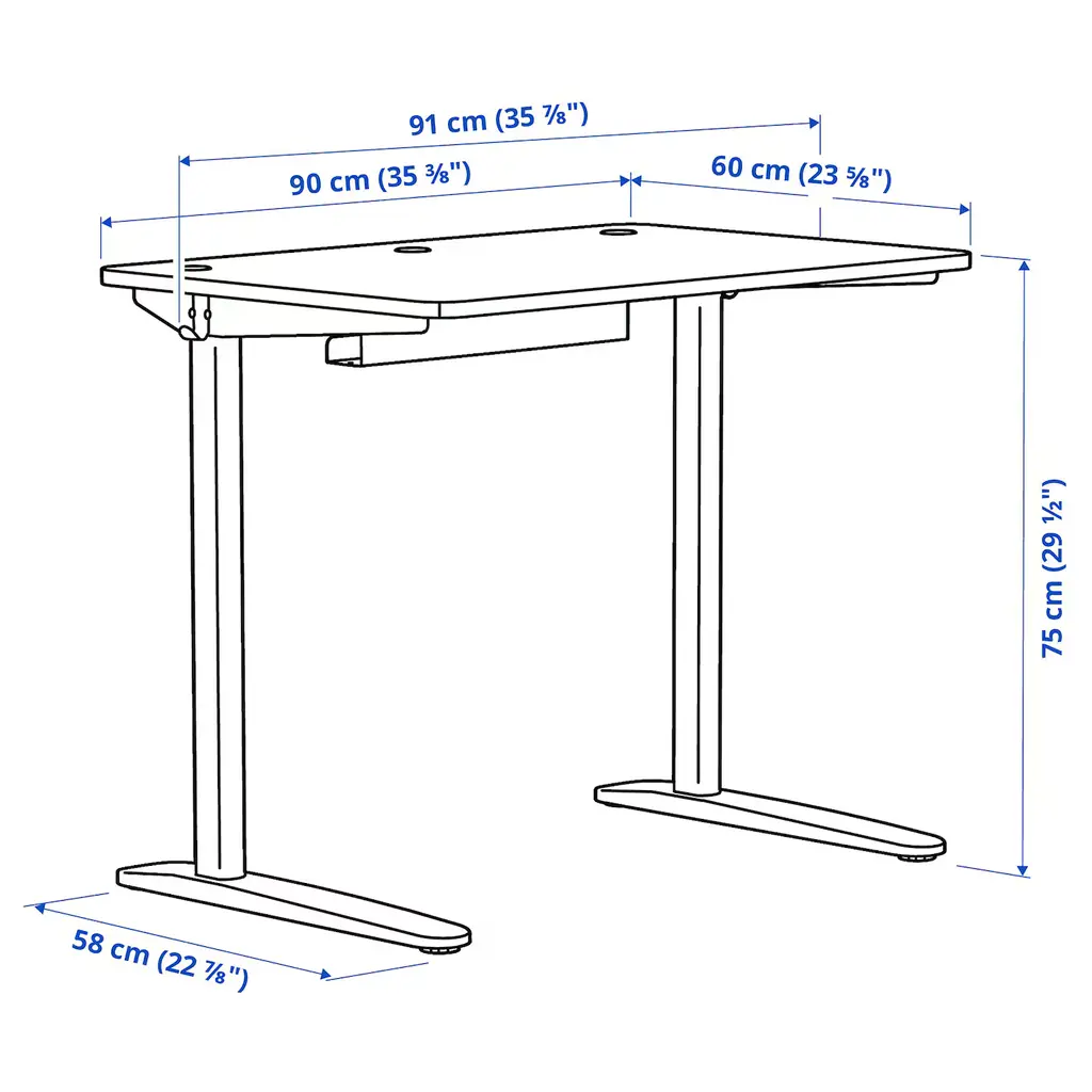 RELATERA Desk - white 35 3/8x23 5/8 ". The melamine surface is durable, stain resistant and easy to keep clean. The hook can be placed either to the left or right of the desk to hang a bag or headphones. Adjustable feet make the desk stand steady on uneven floors.