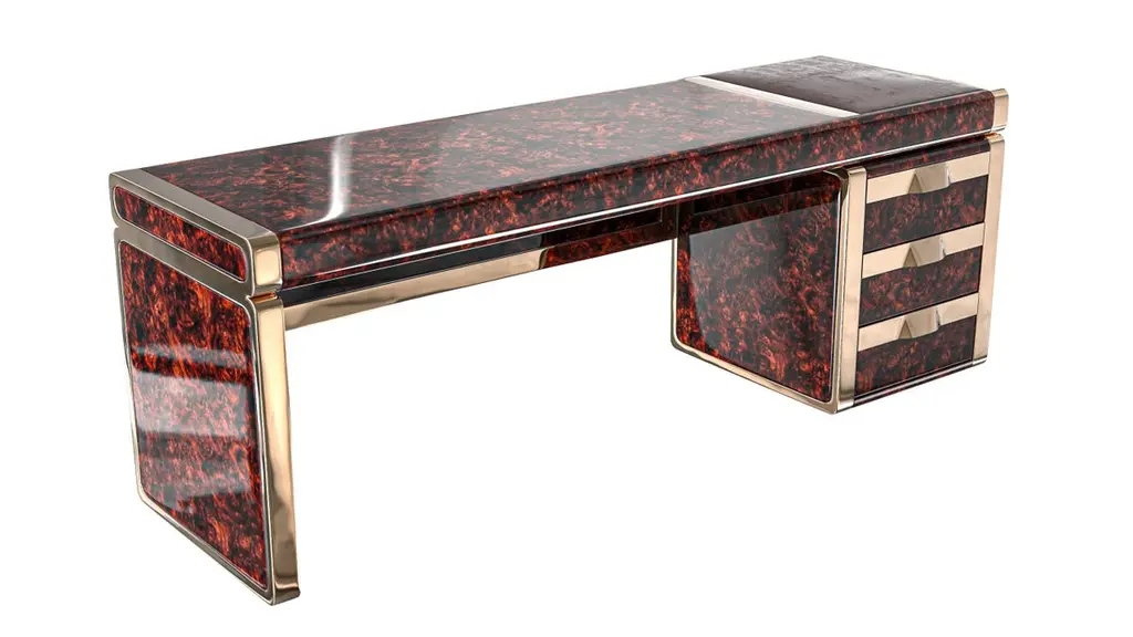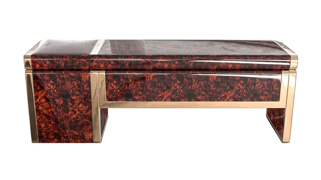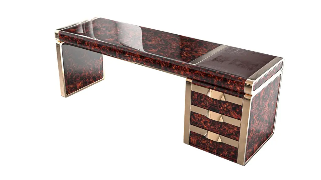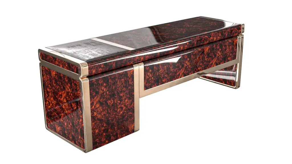 Riccio Collection."Riccio / E" hand crafted desk with burl walnut and bronze details, Istanbul.Designed by Hasan Samet Bizimyer.Design, Art, Innovation.Bizimyer Furniture Presents.Bizimyer Art / Design.The world needs icons. Those exceptional few that stand clear of the rest. For these individuals who inspire greatness, only the purest expression of Bizimyer Furniture will do. An icon like no other.Unparalleled elegance, beauty and presence.The purest of retreats. The most luxurious touches abound.The world’s finest A grade hides. Hand-crafted wood veneers. Distinguished people is cocooned by the finest materials and impeccable workmanship. This is a truly unique space, defined by unparalleled comfort.Refined design heritage. This work of art will add value to your life with the precious handwork of Istanbul's best masters."Bizimyer Furniture" is a "Bizimyer Art / Design" company. The design company was founded in 2006 by Hasan Samet Bizimyer.Hasan Samet Bizimyer focused on innovative designs and brought them to life.Now, via 1stDibs, for dear art lovers, it offers carefully crafted timeless and exclusive design furniture.Design and Production by Hasan Samet Bizimyer.