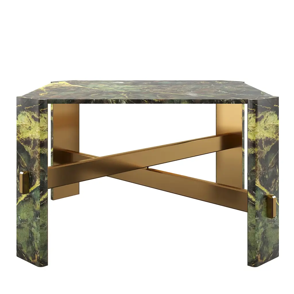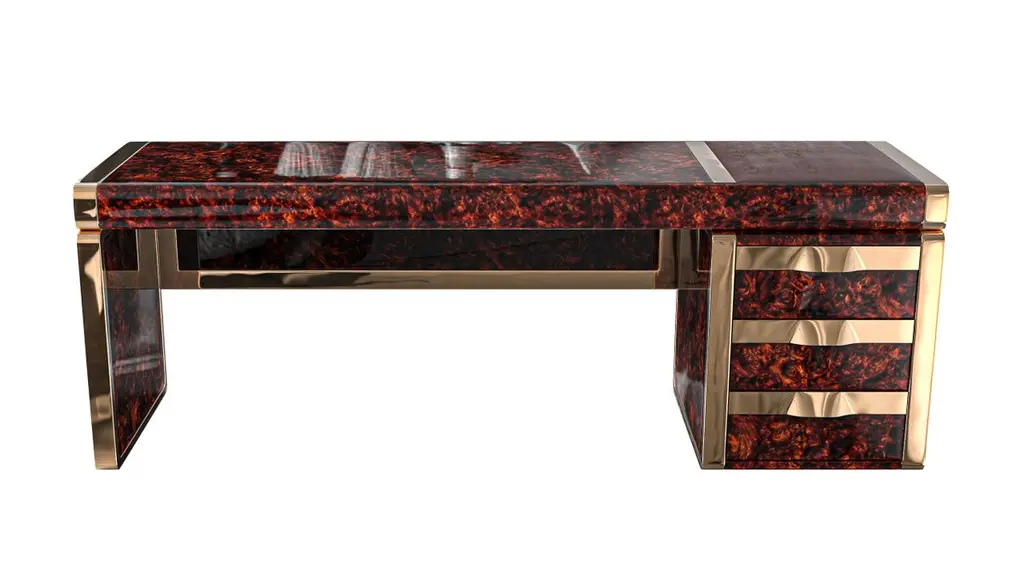 "Riccio / E" Hand Crafted Desk With Burl Walnut And Bronze Details, Istanbul