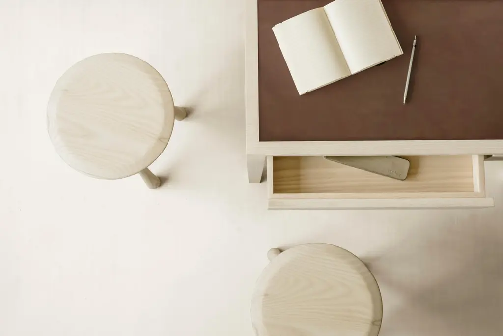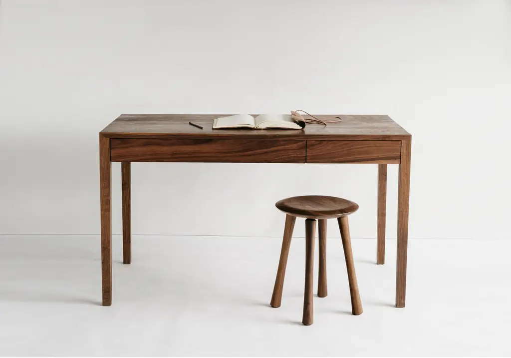 The writing desk is inspired by a classic writing table originally intended for writing letters by hand. As in the traditional table, there are discreet drawers under the writing surface. These drawers open from below, which is carved with a soft edge to fit comfortably in your hand. A nod to the classic table is the option for a leather insetEach Richard Watson piece is made in Pawtucket, RI by a team of men and women who are passionate about their craft. The pieces are constructed using select domestic hardwoods and traditional joinery and hand finished with natural oils, lacquers and wax. Available in walnut, white oak, and bleached ash.Custom dimensions available.