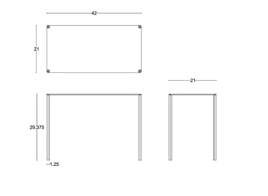 Rick's desk in brushed and anodized aluminum plate and bar. Commissioned for famed graphic designer Rick Valicenti of design firm Thirst in Chicago, Rick's desk is scaled as a small task or home office workspace. Made of milled 3/8 inch thick aluminum plate with 1 and 1/4 inch diameter CNC-cut aluminum legs that screw into tapped blind holes to the underside of the work surface. The legs match the diameter of the radius corners of the desk. Custom variations, finishes and colors available by request.