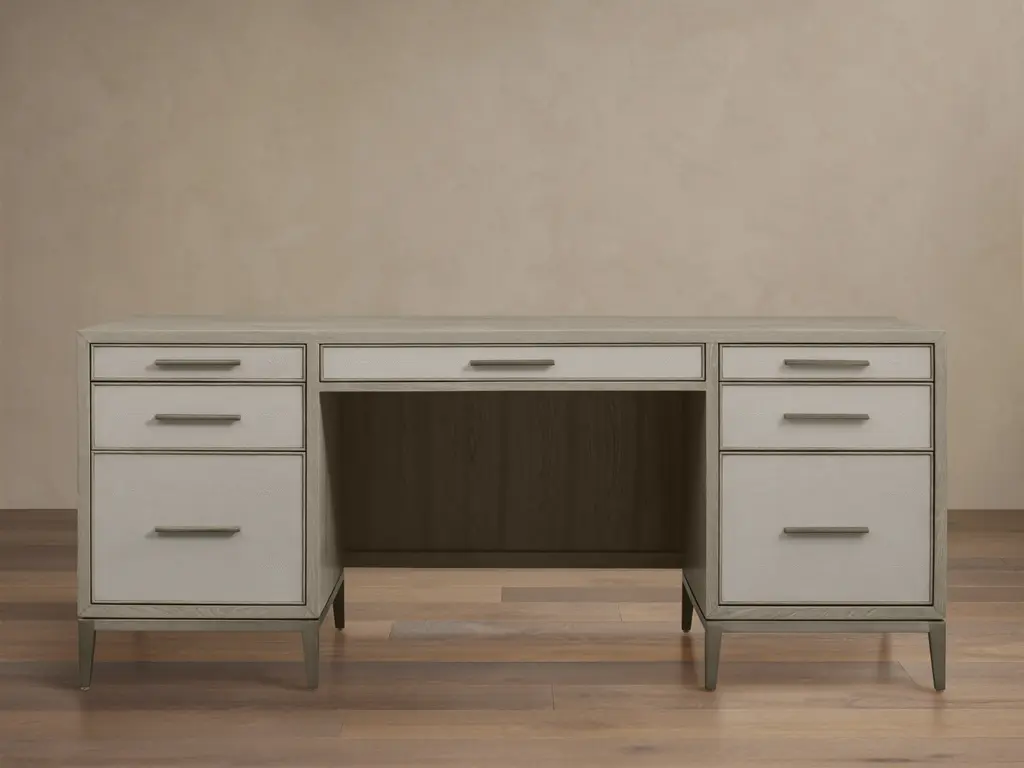 Give your mid-century modern decor that finishing touch with this home office desk. Spacious drawers with unique wooden drawer pulls enhance the design with stunning style. This desk takes minimalism to the max.