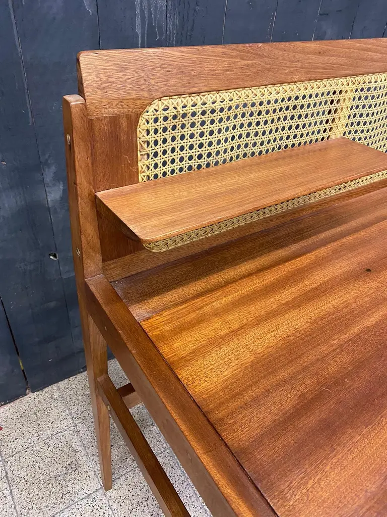 Roger Landault (attributed to) elegant walnut desk table circa 1960 Fully restoredTwo desks are available.