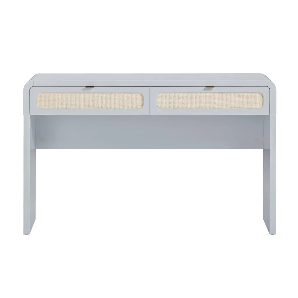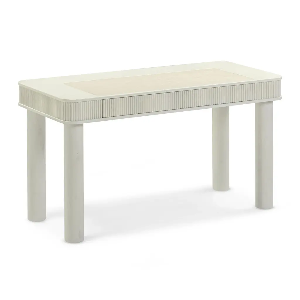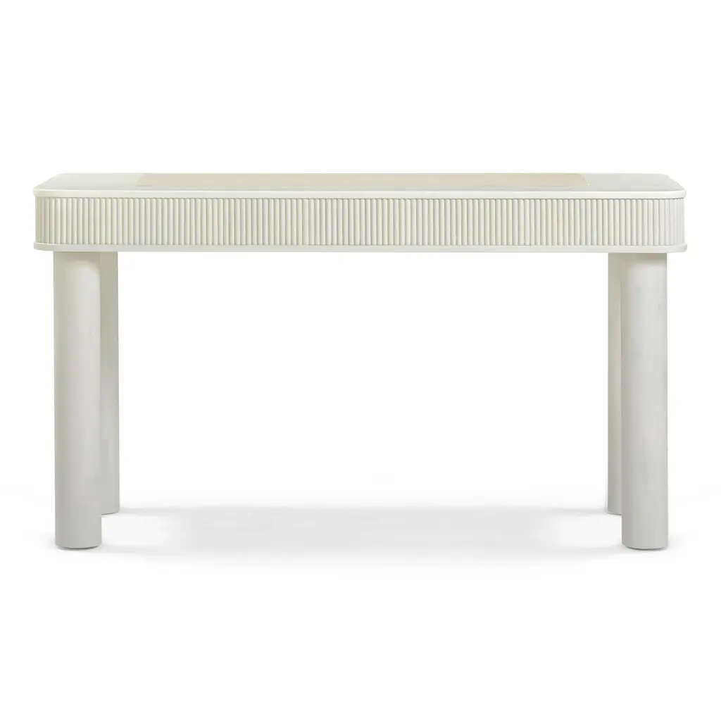 The Sarah Desk brings sculptural beauty to your workspace with fluted edging, thick pillar legs, and a fully finished back that stuns from every angle. Its marine grade vegan leather top wipes clean with ease, even pen marks disappear, while push-to-open drawers keep the look sleek and refined.