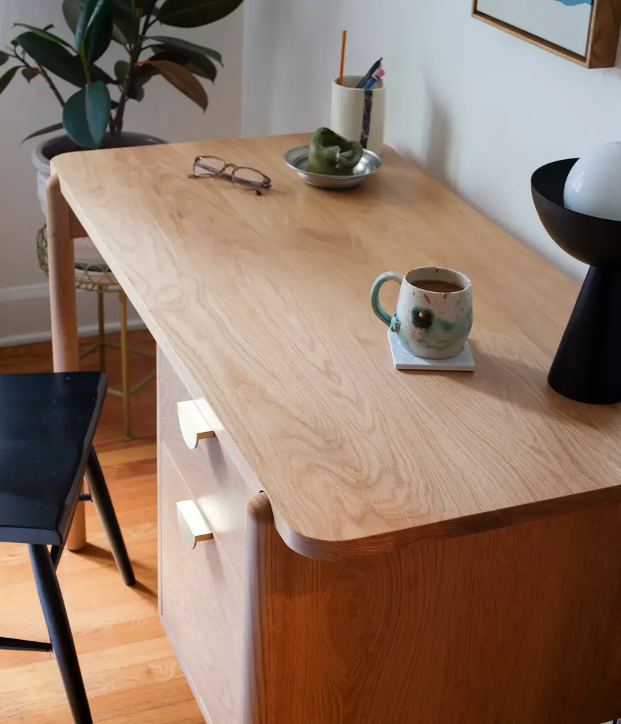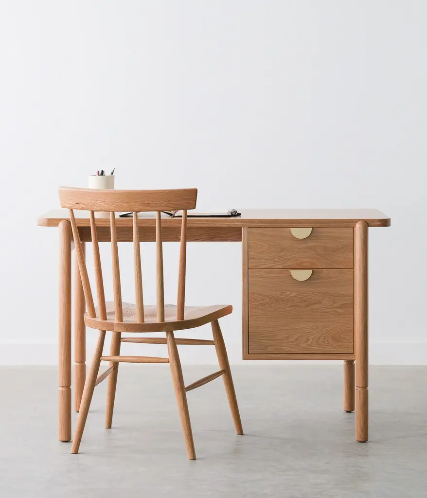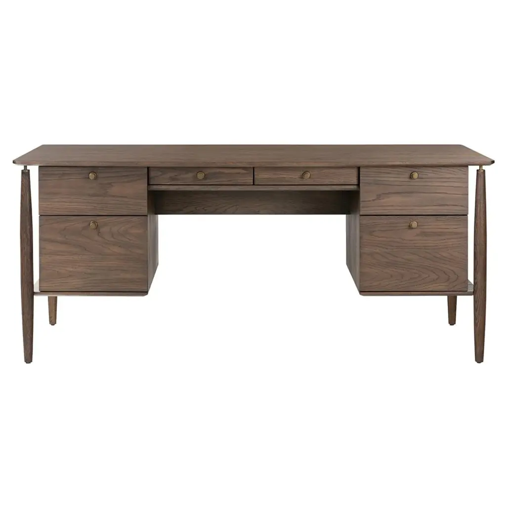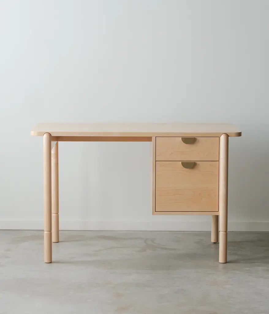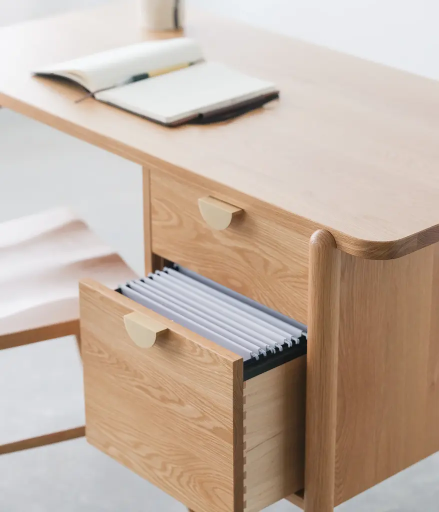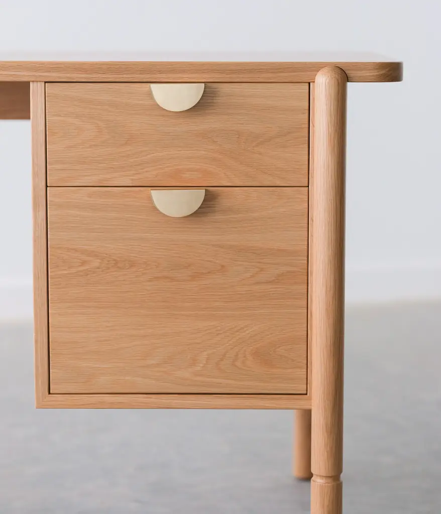 The Sawyer desk is the perfect piece for your home office. With ample desk space and a convenient built-in file drawer, it‚ all you need to get started on your next project. Solid brass pulls with a satin finish. Drawers have soft close slides.