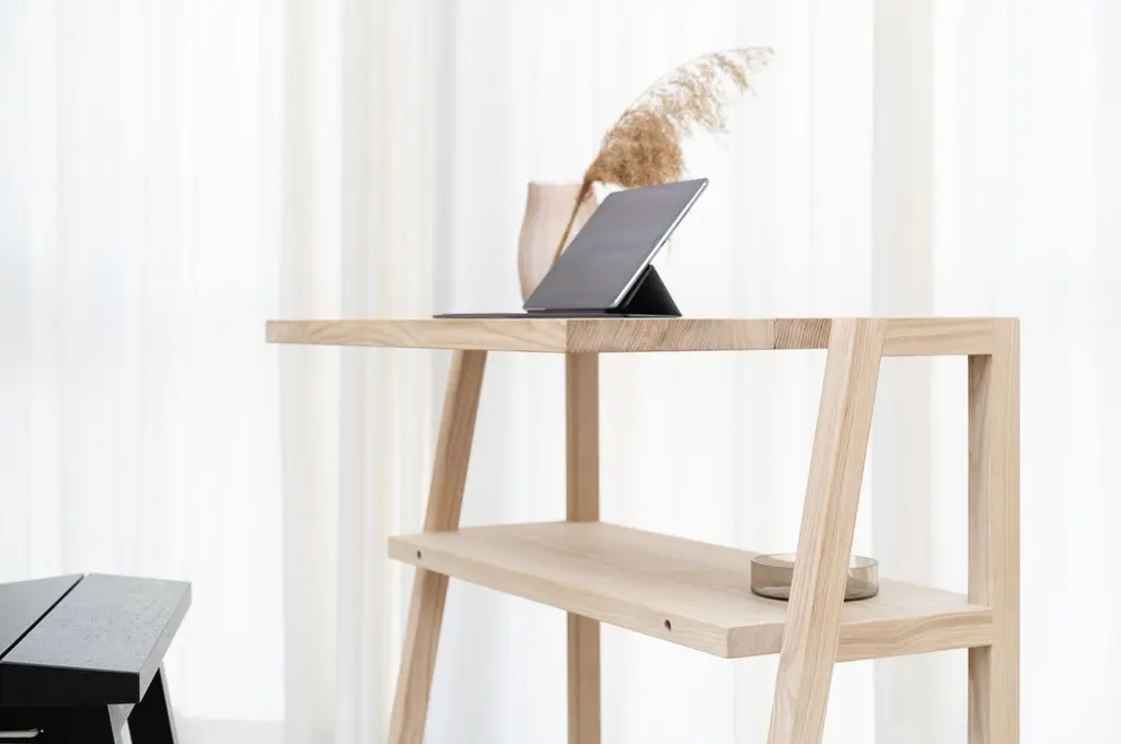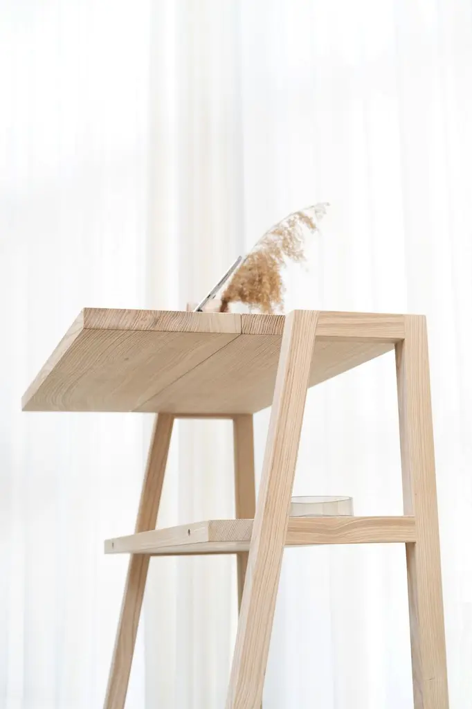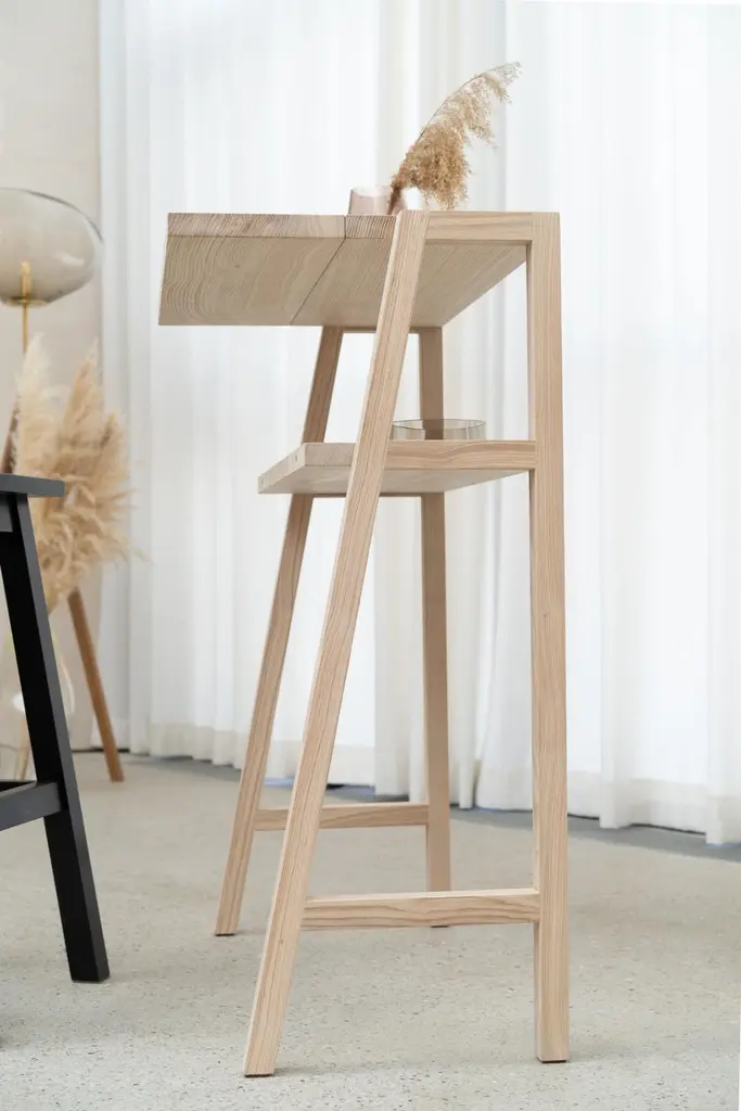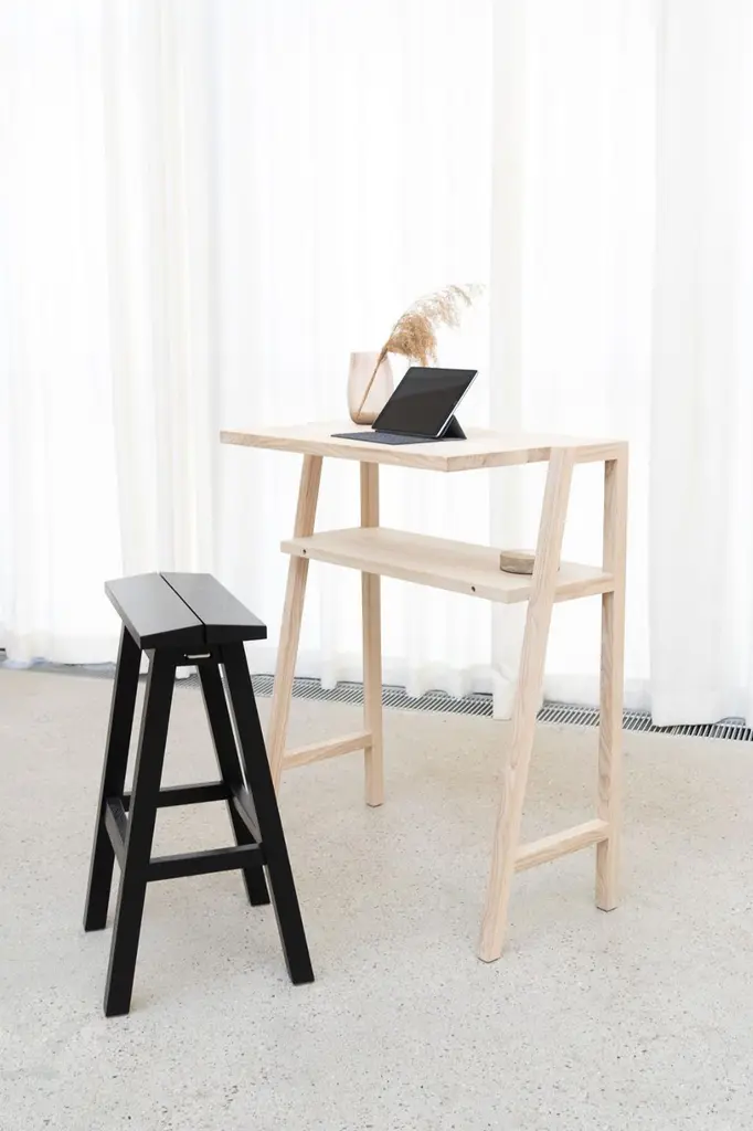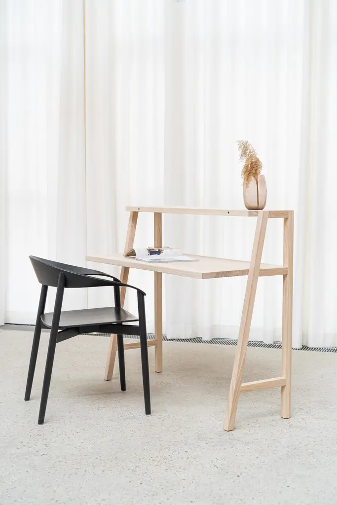 Scala Flex Desk 85 by Frau CazeDimensions: D 52 x W 85 x H 105 cm.Materials: Soaped ash.Available in 85 or 120cm width. Please contact us.Flex Desk Scala allows you to switch between sitting and standing orientations. Simply insert the additional table board at the desired height to be used.Although Berlin has been her home for many years, Carolin – the designer behind Frau Caze, with “Caze” being a fusion of her first and last name – has never been one to stand still. She has traveled the world relentlessly in search of inspiration for her work. These travels have greatly influenced her unique sense of atmosphere and texture, as well as her concern for our planet – Frau Caze places a great emphasis on sustainability, quality, and functionality.Currently, Carolin splits her time between Berlin and Lake Constance, and has devoted herself to furniture and interior design ever since studying design at the FH Potsdam and the Escola Superior de Desenho Industrial in Rio de Janeiro until 2012. Founding Frau Caze in 2016, her work pays tribute to her love of natural, high-quality materials as well as sustainable, responsible craftsmanship – including ethical treatment of all people involved in production.