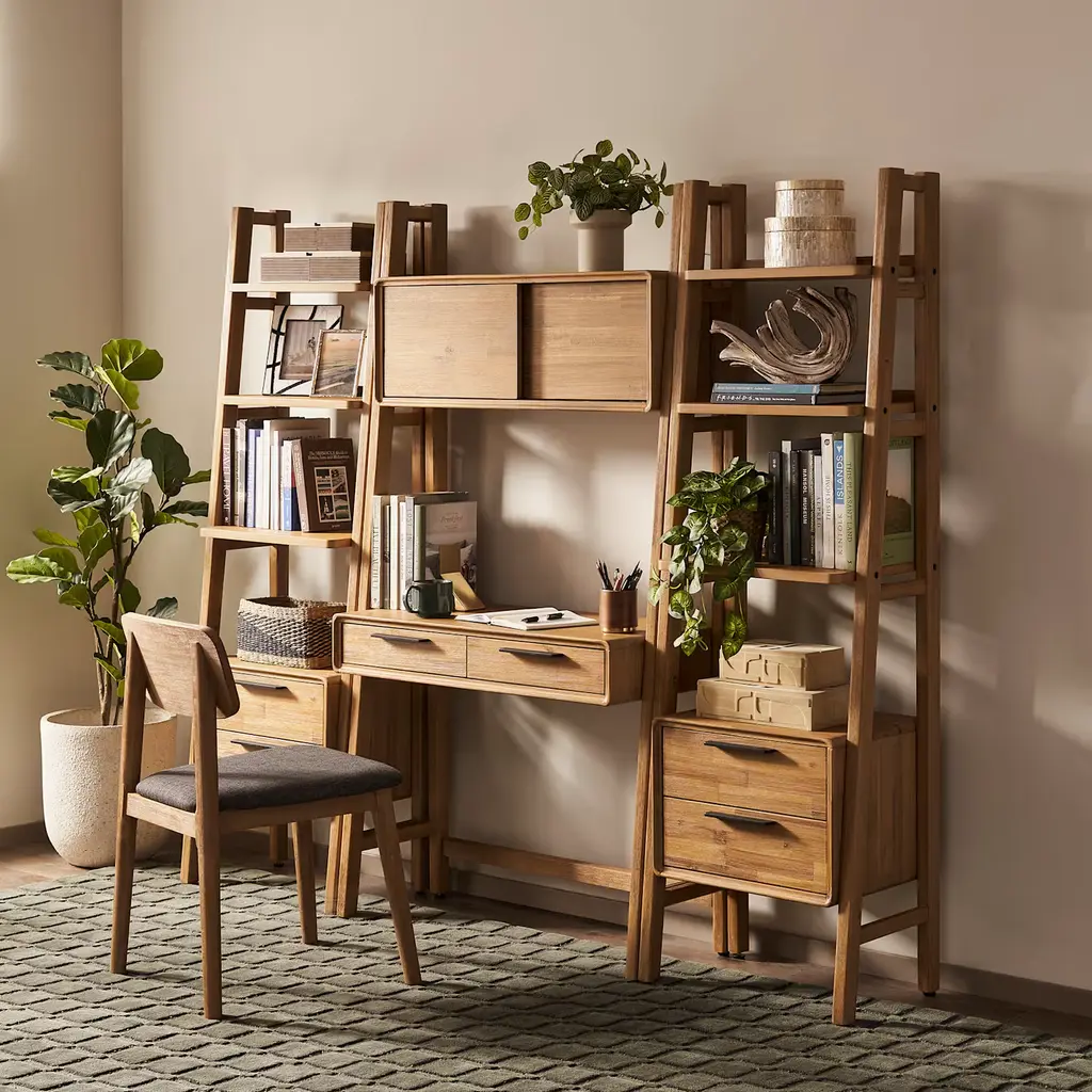 Part shelf, part desk, all style. This modular marvel lets you mix, match, and adjust - so your setup evolves with your life (and your ever-growing book collection). Solid acacia wood brings durability while mid-century modern design keeps things looking versatile and timeless.