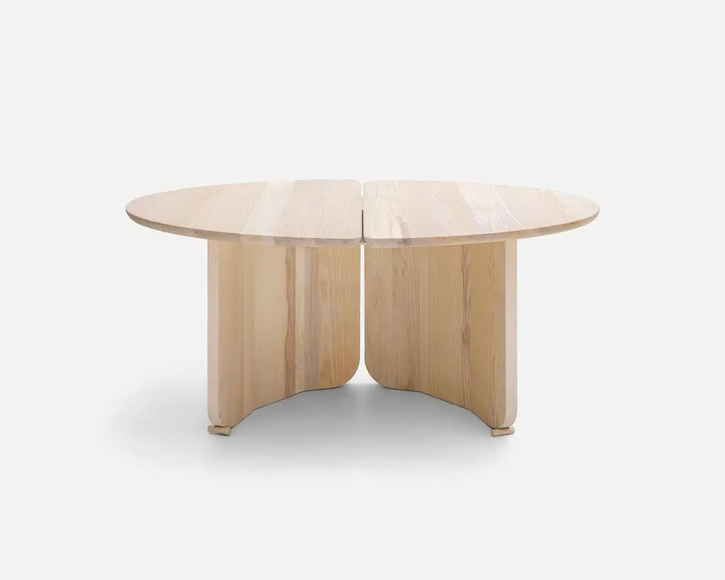 The Dogon desk was designed as the evolution of the Himba table. The oval, sinuous shape of its oiled natural ash top rests on faceted legs positioned in a semi-circle. The top is the result of the juxtaposition of two elements, separated by a groove that allows the passage of cables, thus keeping the desk free of entaglements.Available also in different sizes:W Ø160 x H 72 cm W Ø63” x H 28,3”W Ø180 x H 72 cm W Ø70,9” x H 28,3”W Ø210 x H 72 cm W Ø82,7” x H 28,3”